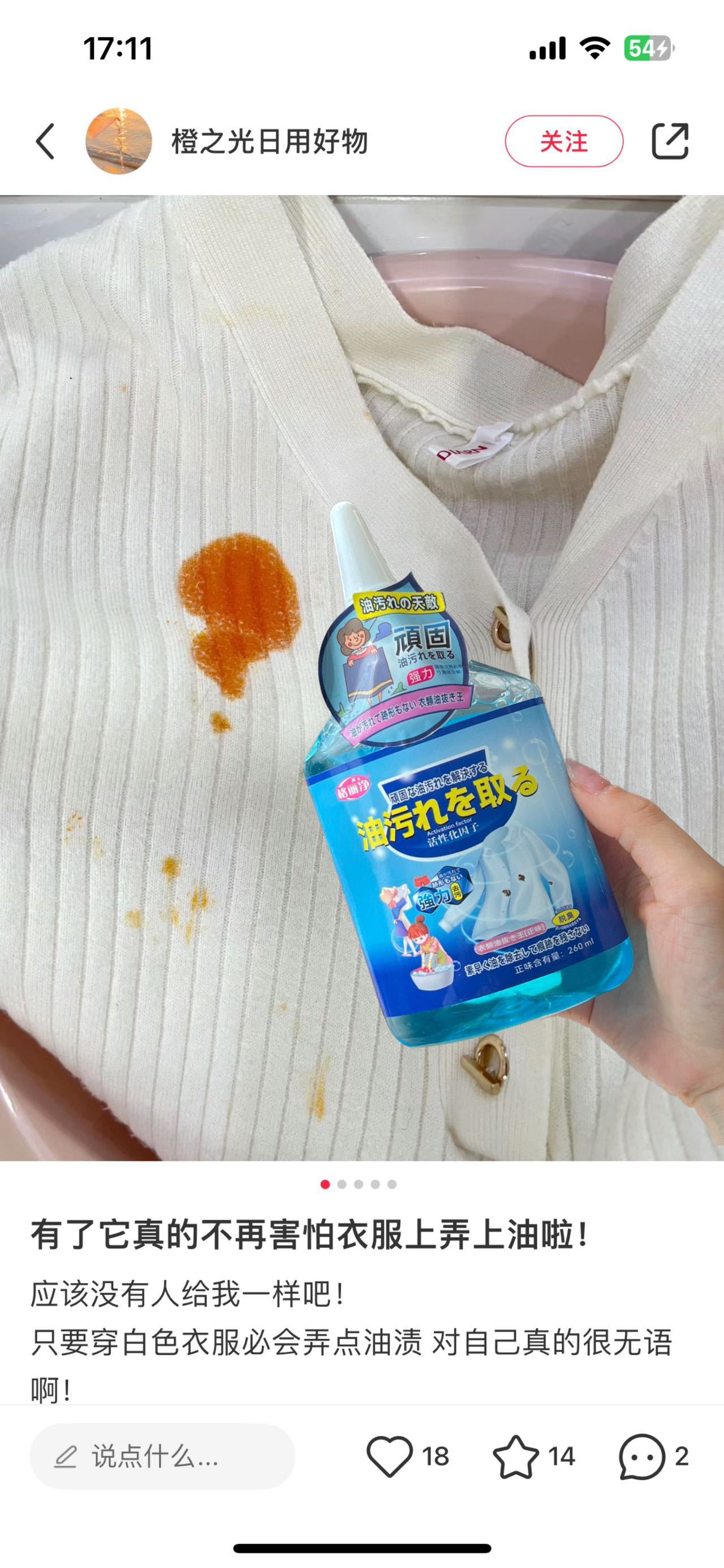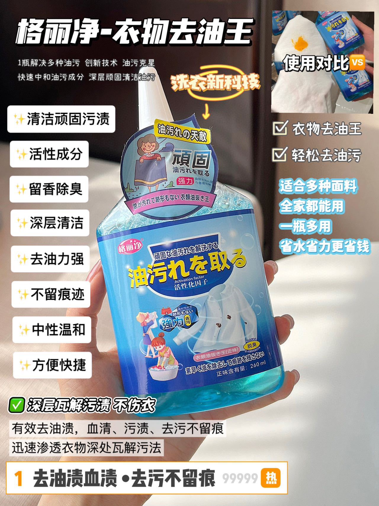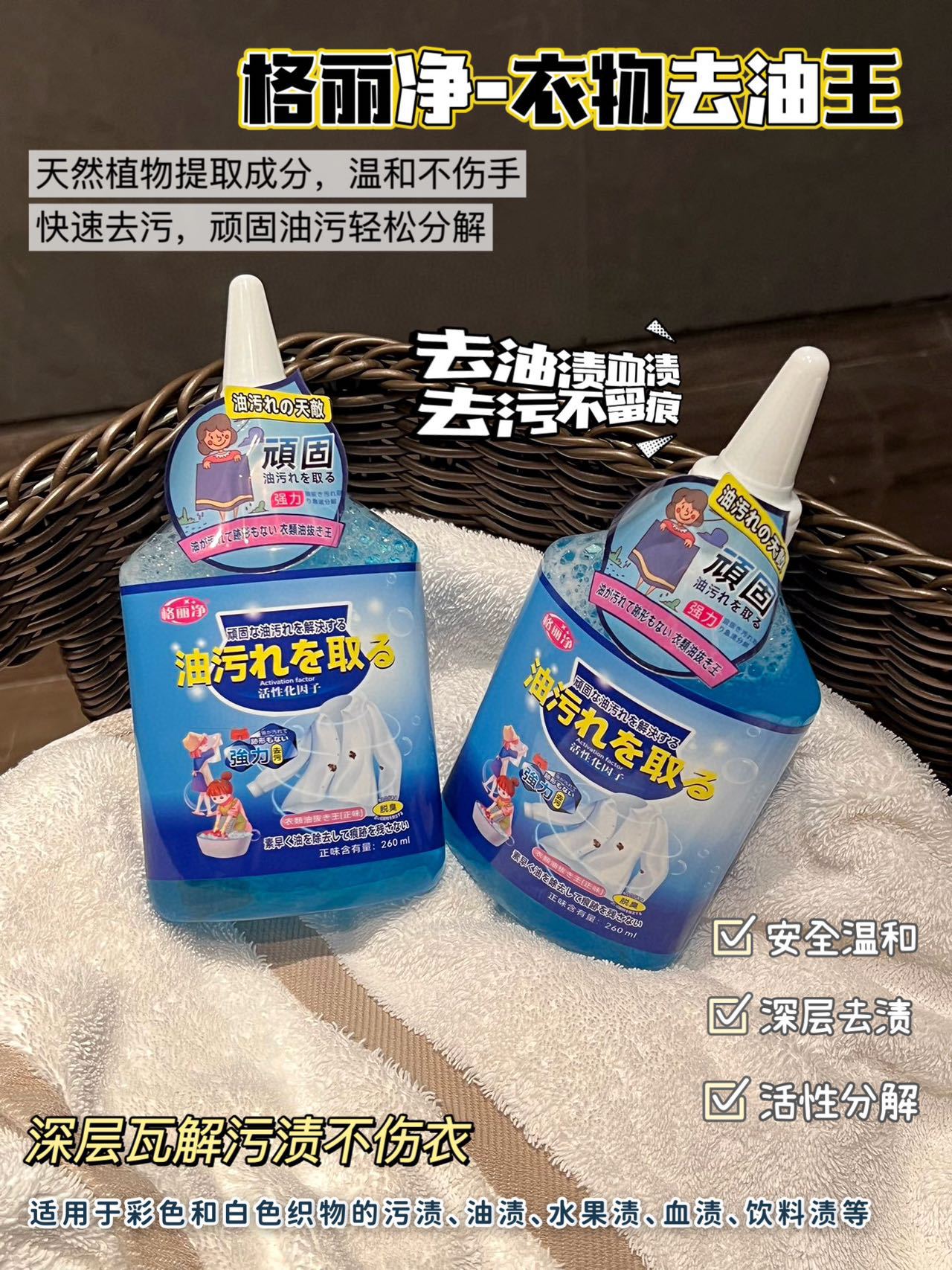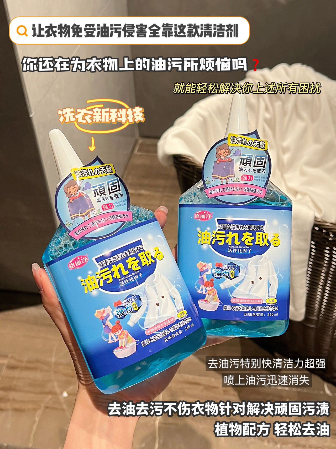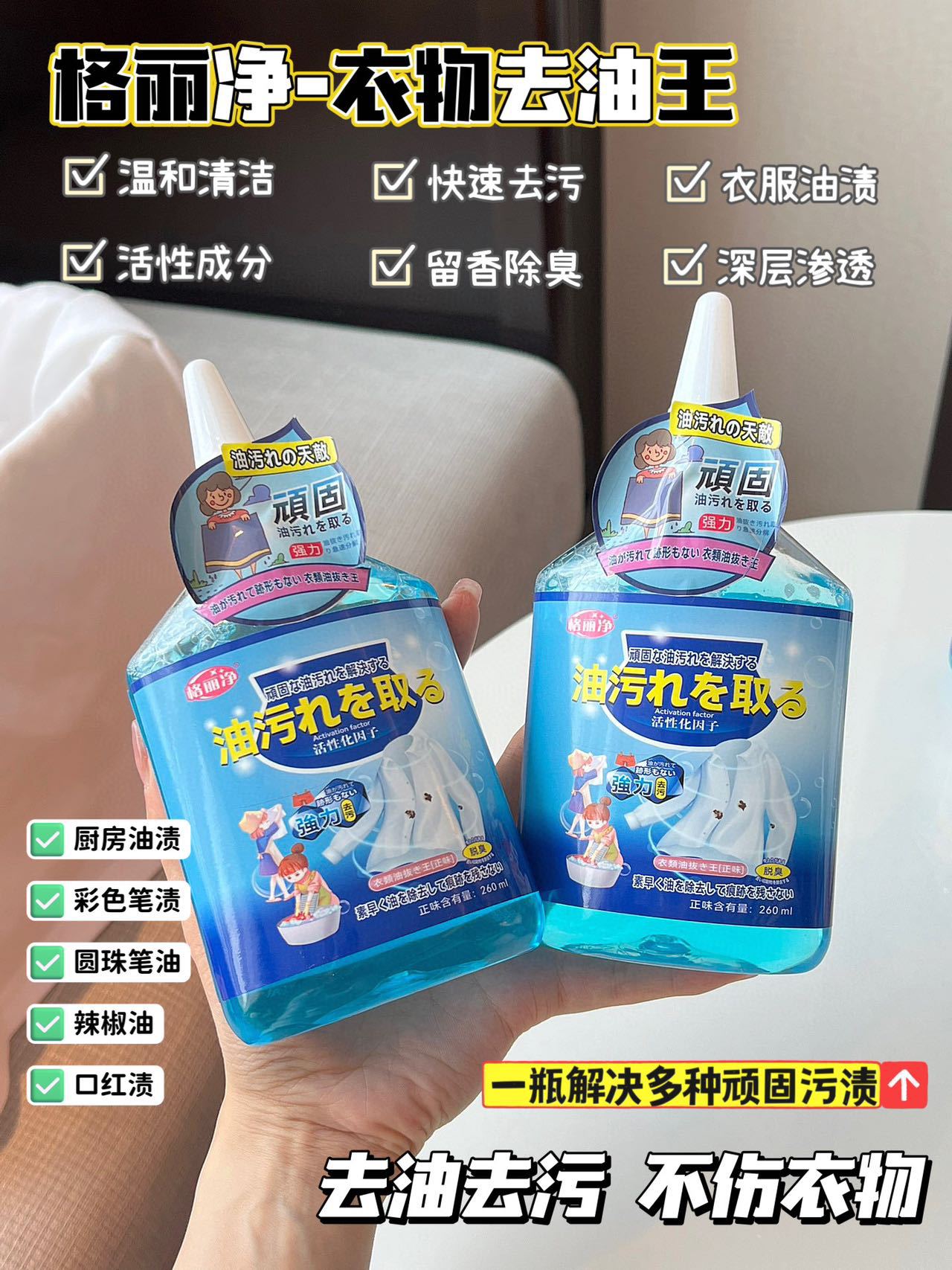 格丽净【拍一发二】衣物油污净清洁剂深层省力去黄不留痕迹温和增白