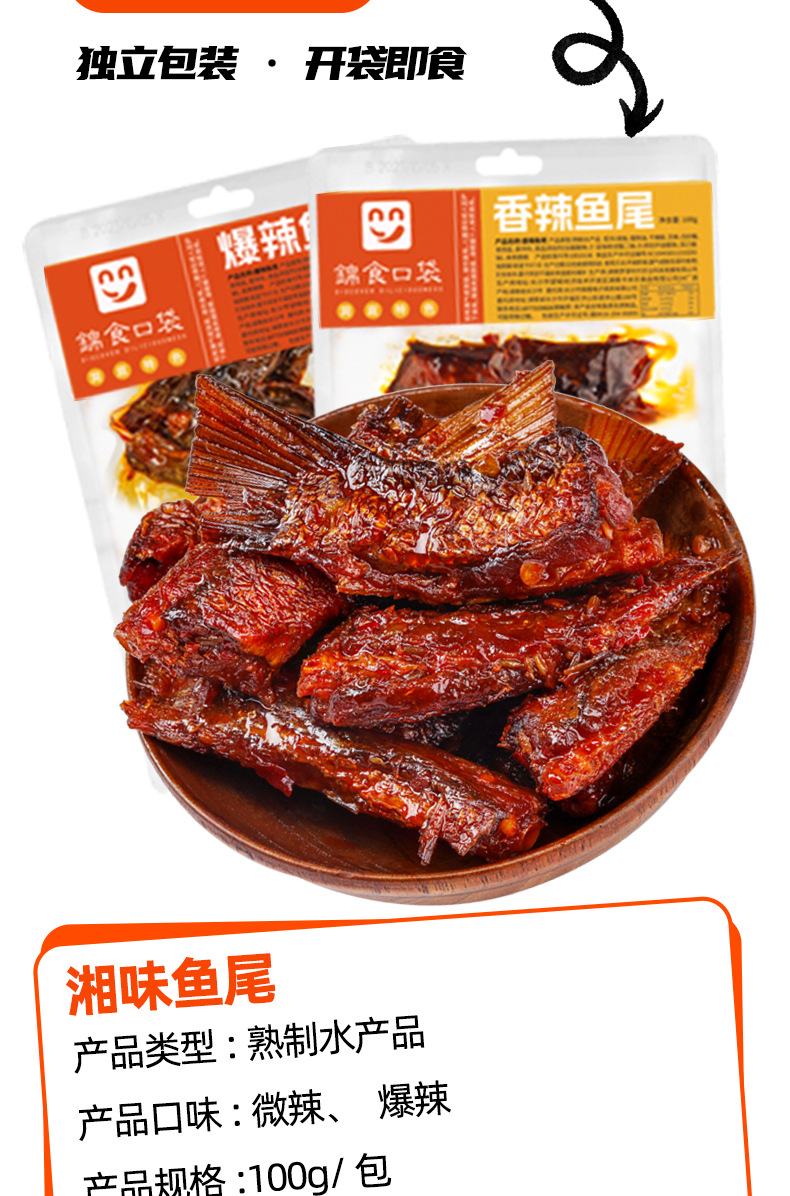 - ¥42.80辣卤鱼尾【爆辣】,100g*6袋