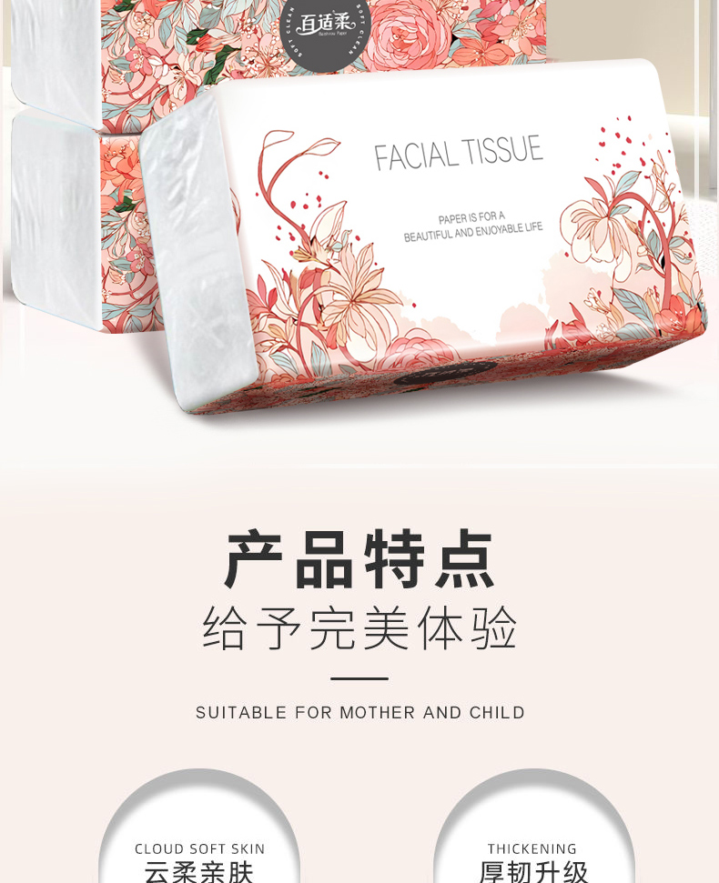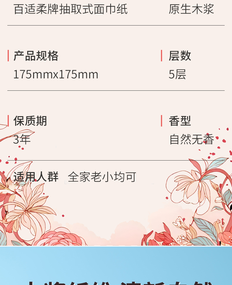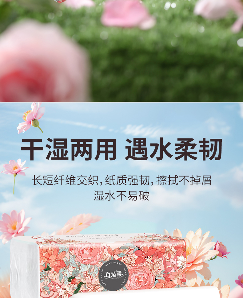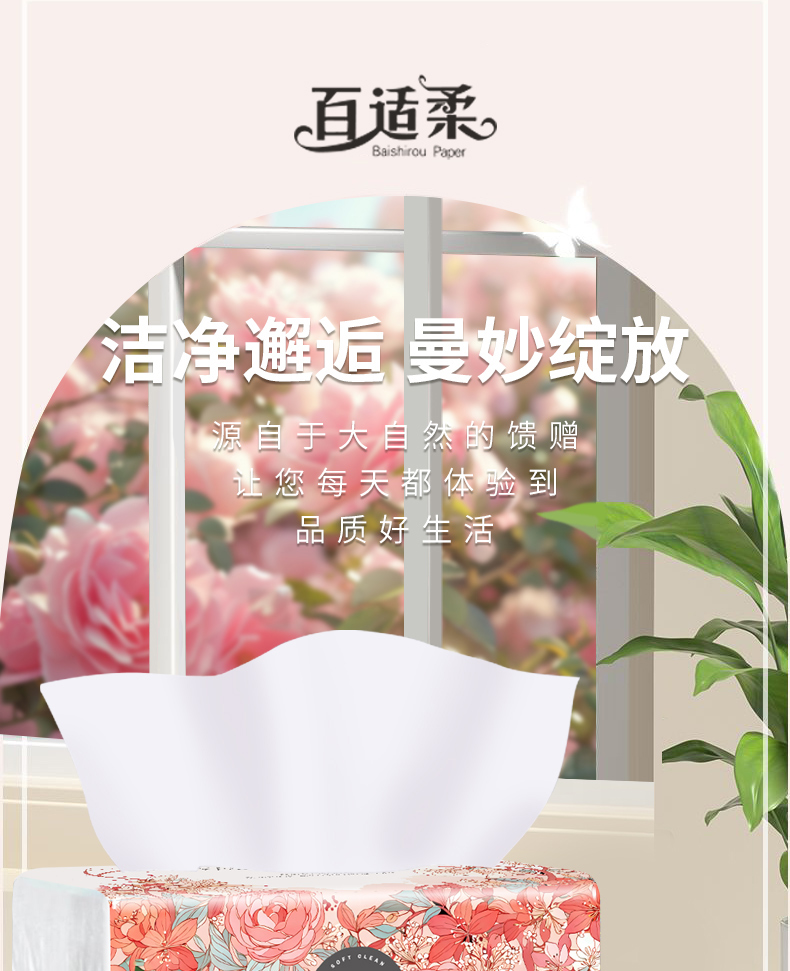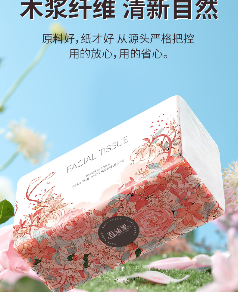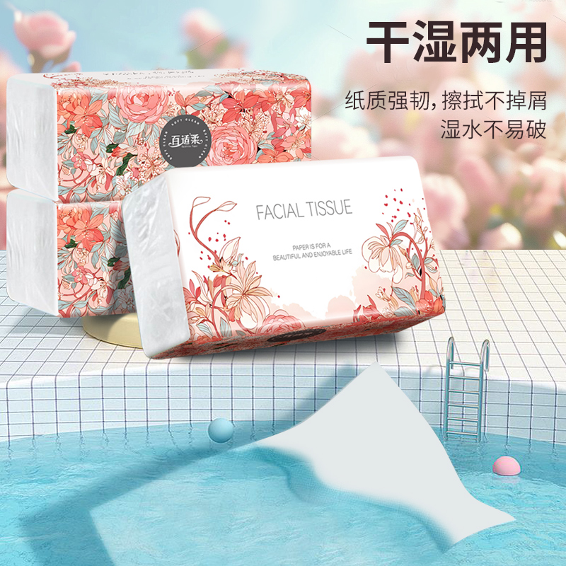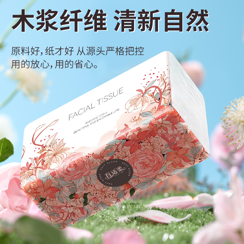 baishirou/百适柔繁花系列超大包家用抽纸面巾纸整箱20大包