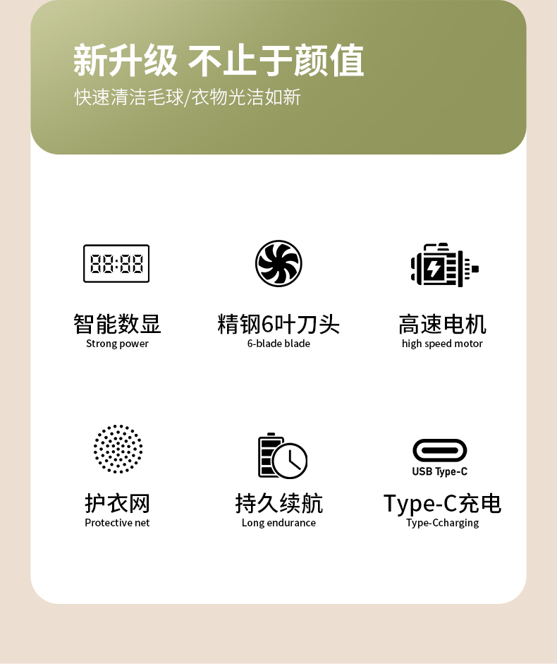 - ¥24.90翠果绿【液晶数显款+1备用刀头】加大转速刀网+tpc快充