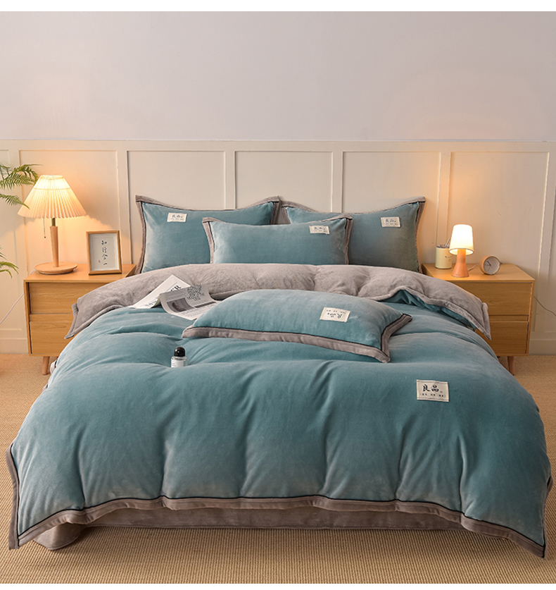- ¥189.00宾利蓝+浅灰【不掉毛不掉色高克重牛奶绒】,1.8m床【床单款四件套】-适用200x230被子