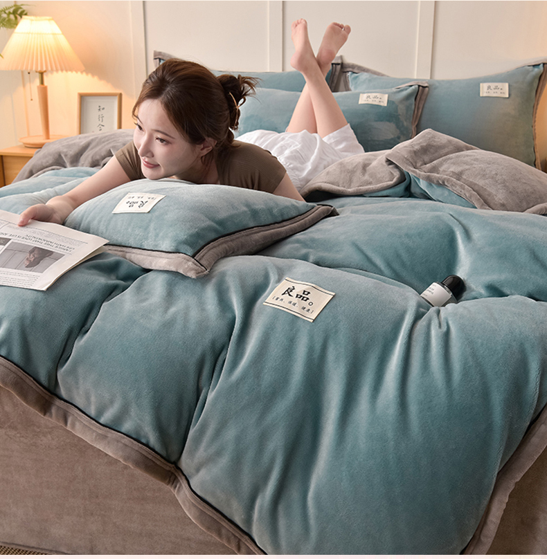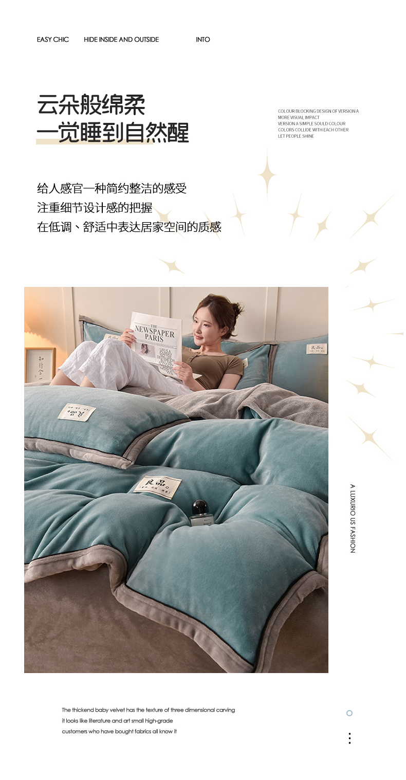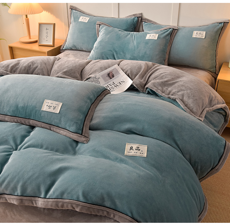 - ¥199.00豆沙+浅灰【不掉毛不掉色高克重牛奶绒】,1.8米床笠四件套【床笠180x200被套200x230】