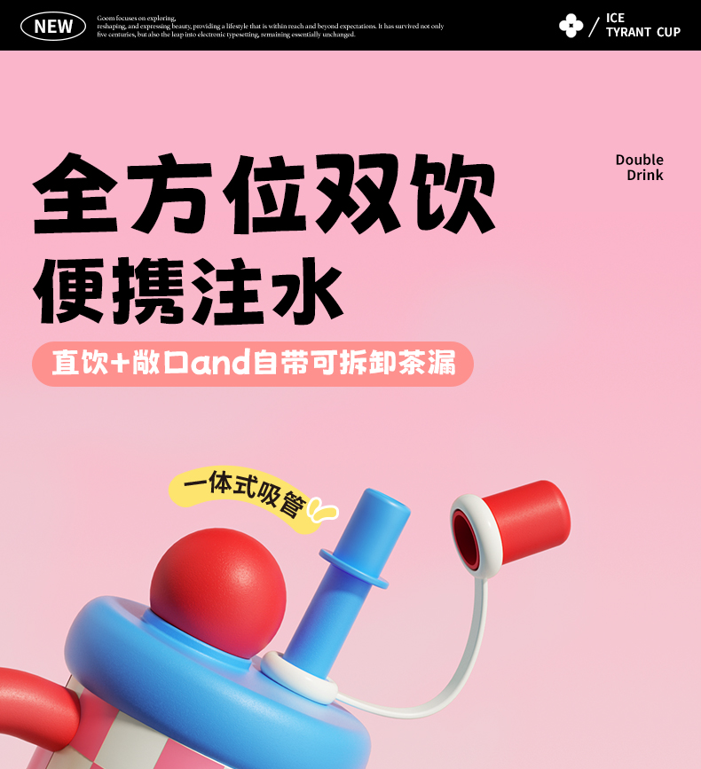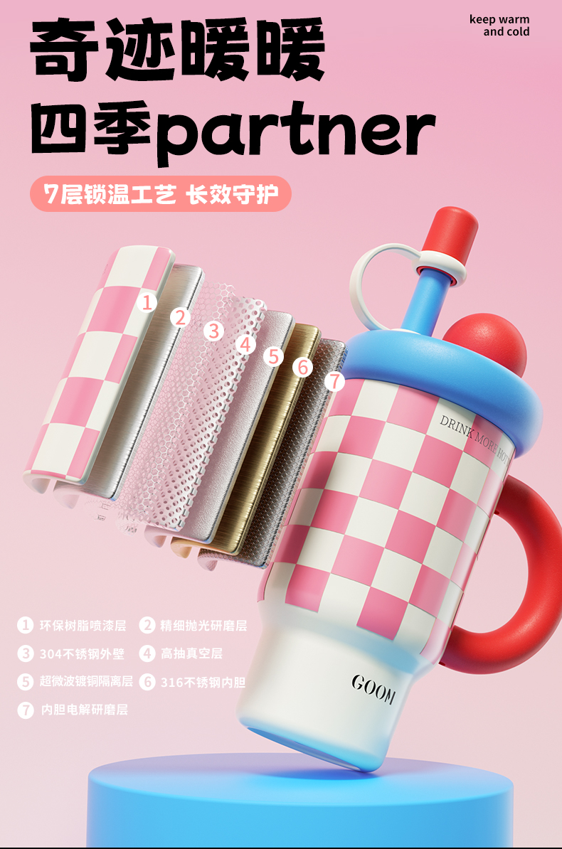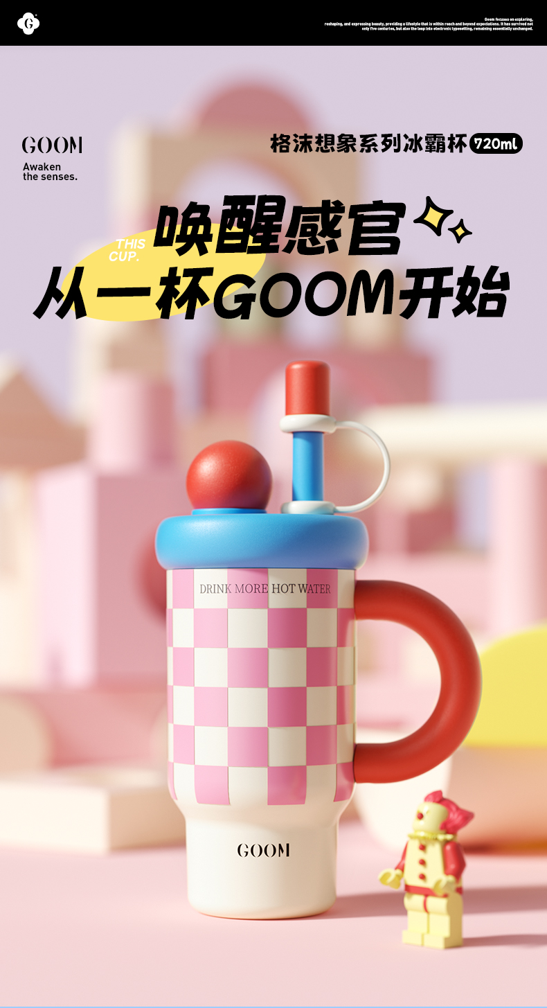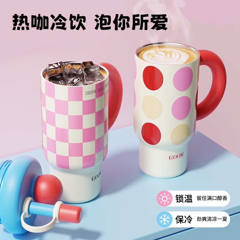 GOOM巨无霸保温杯2024新款高颜值大容量防漏吸管水杯茶水分离杯子