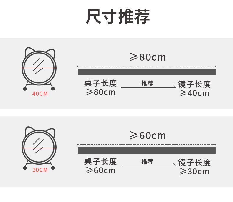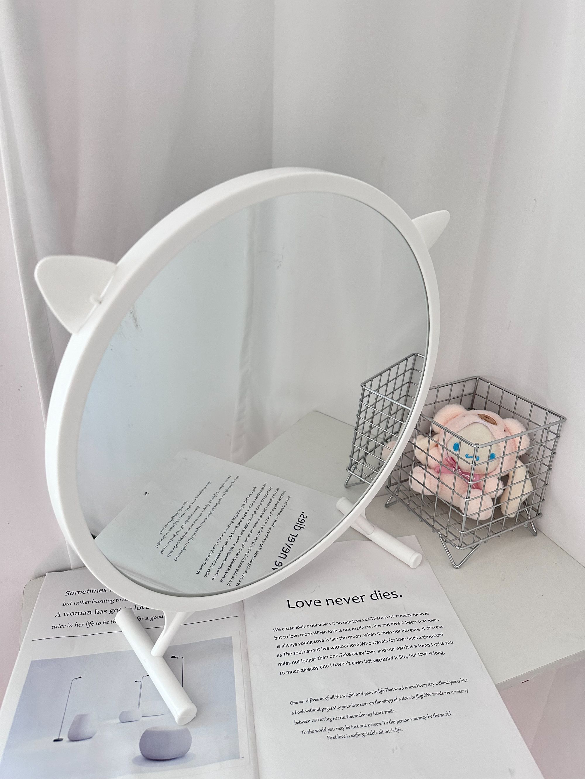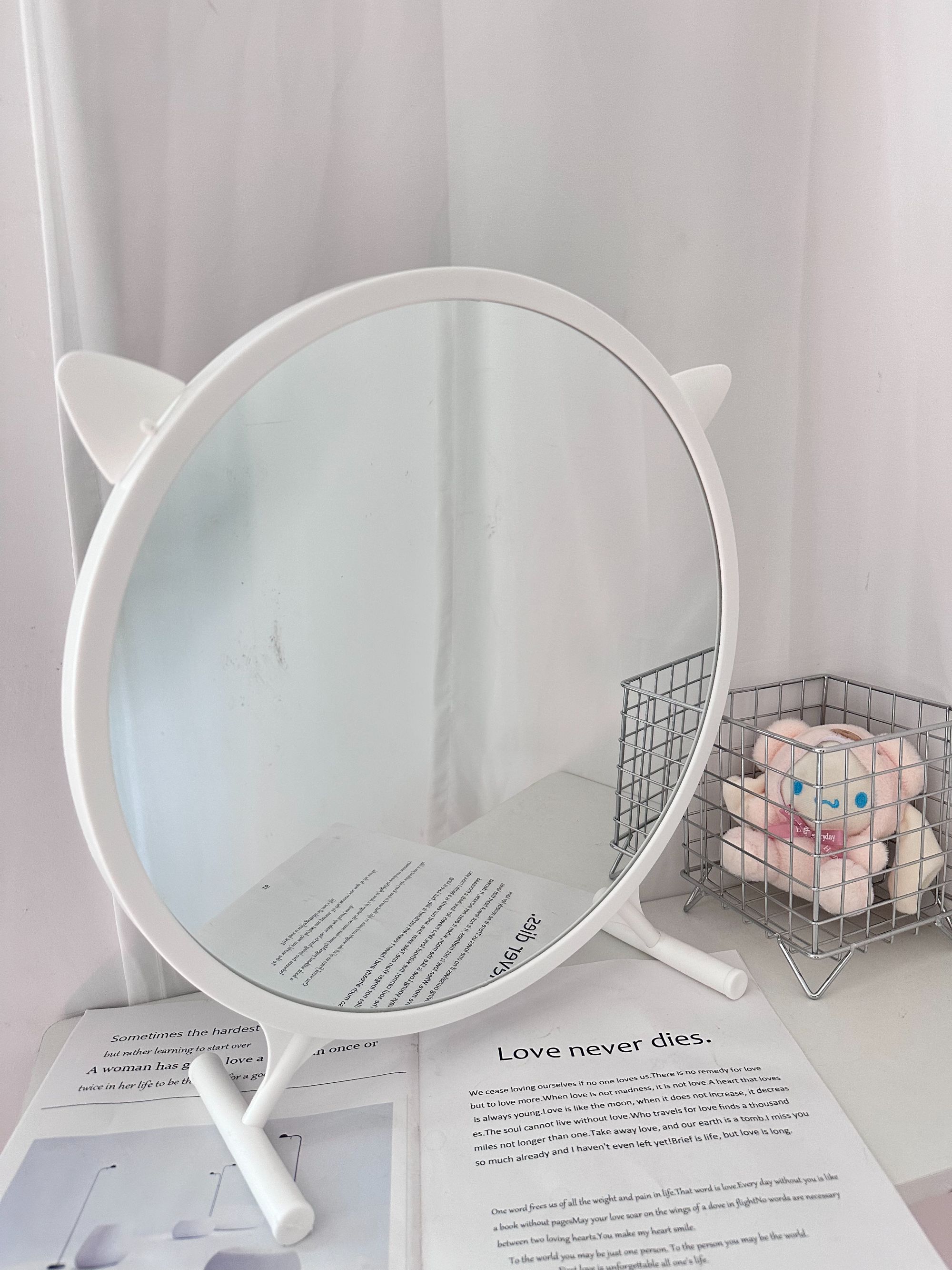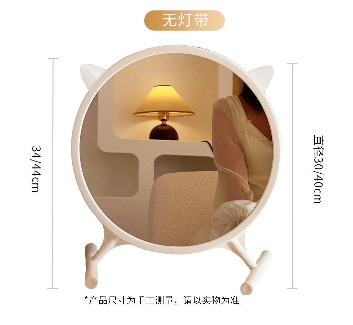 收到这款猫耳化妆镜真是惊喜连连!首先,外观设计超级可爱,猫耳造型非常吸引人眼球,放在卧室梳妆台上瞬间提升了整个空间的可爱氛围。我入手的是冰川白款,颜色干净清爽,和家里的装修风格完美融合。 镜子的尺寸刚刚好,40cm的宽度足够日常使用,无论是化妆还是护肤都能清晰看到自己的脸部细节。虽然是无灯款,但在自然光线下,镜面高清无畸变,成像效果非常满意。 价格方面更是没得说,19.8元能买到这么一款既实用又美观的化妆镜,真的是性价比超高!而且店家还提供了破损补新的服务,让人购物无忧,非常贴心。 总的来说,这款猫耳化妆镜超出了我的期待,无论是从颜值、实用性还是价格方面,都让人无可挑剔。已经推荐给身边的朋友们了,相信他们也会喜欢的!