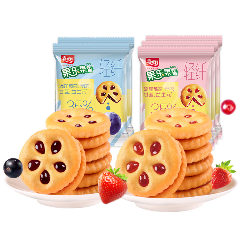 【网红推荐】嘉士利果乐果香轻食果纤27g夹心饼干果酱拉丝