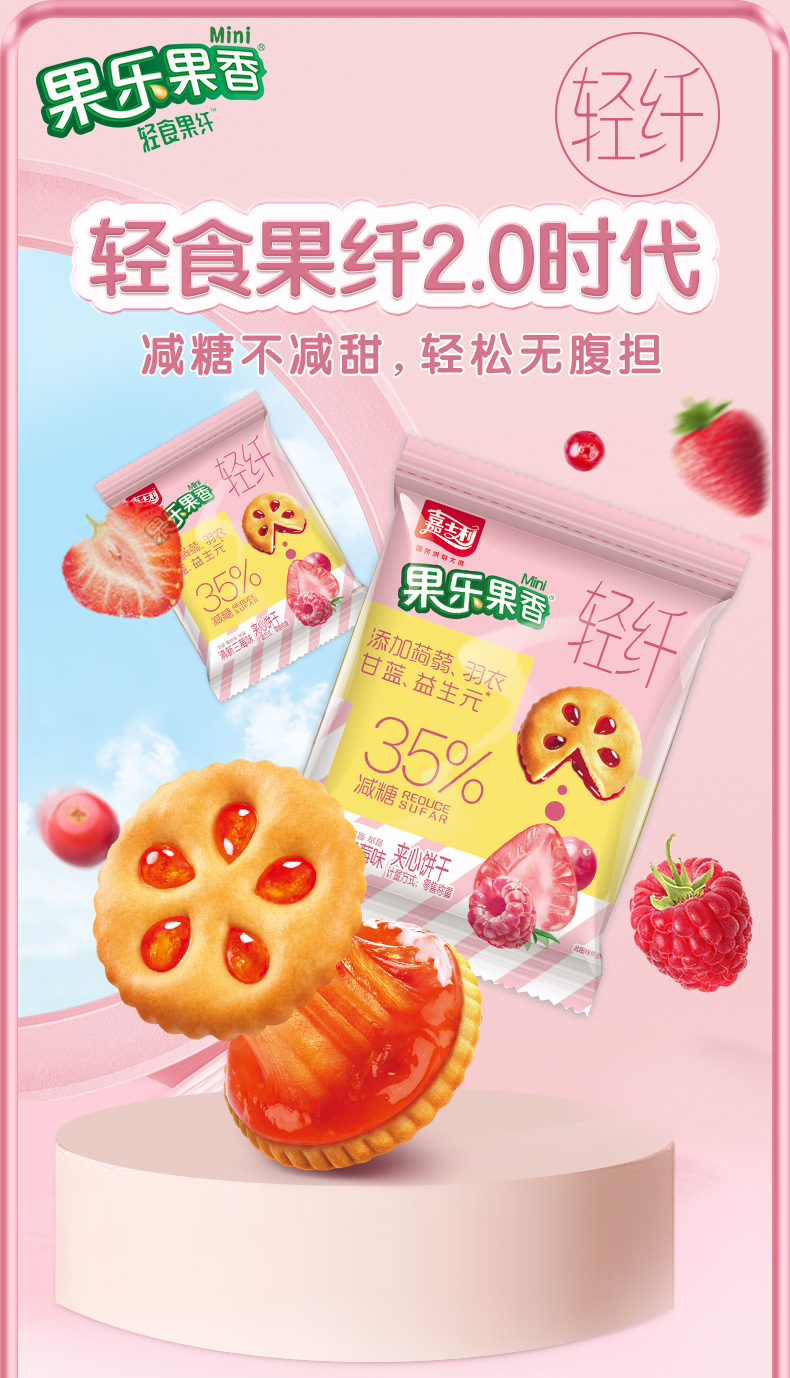 链接月销6500单,口感与性价比并存的美味选择——嘉士利果乐果香轻食果纤饼干