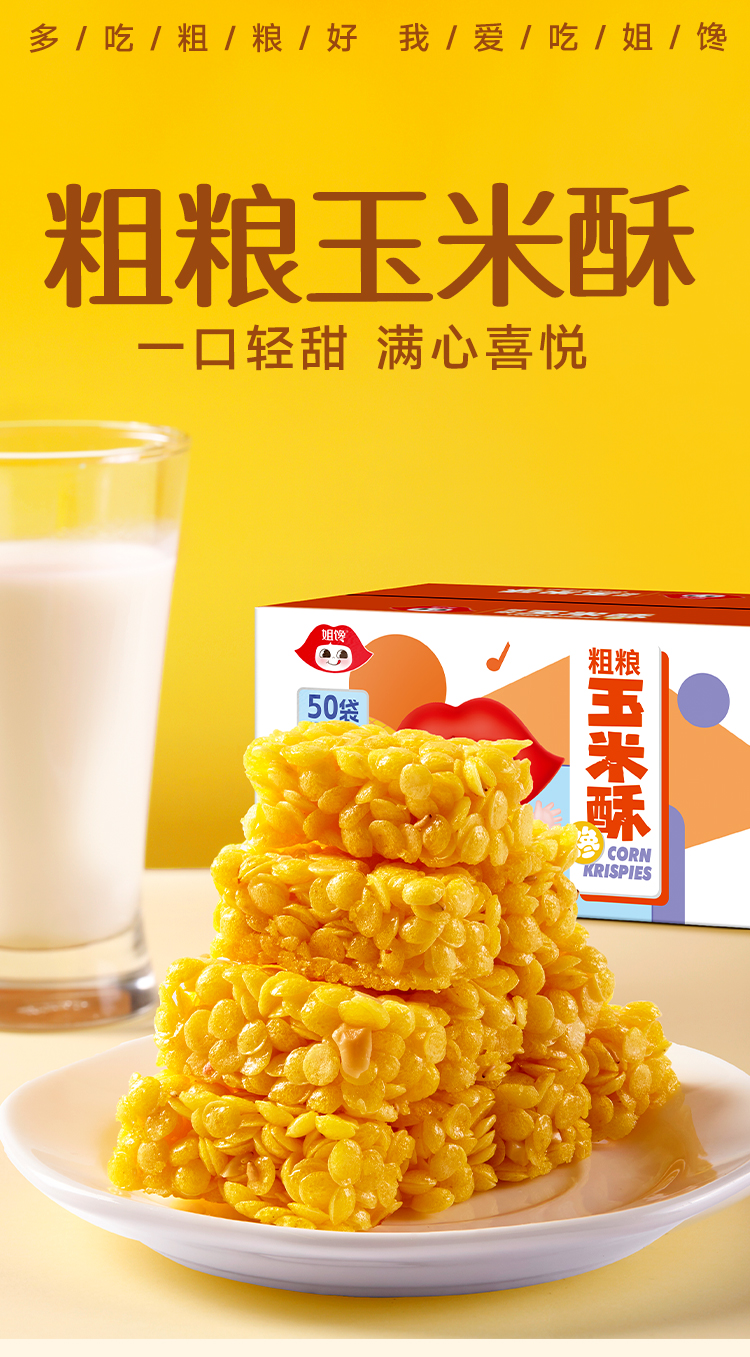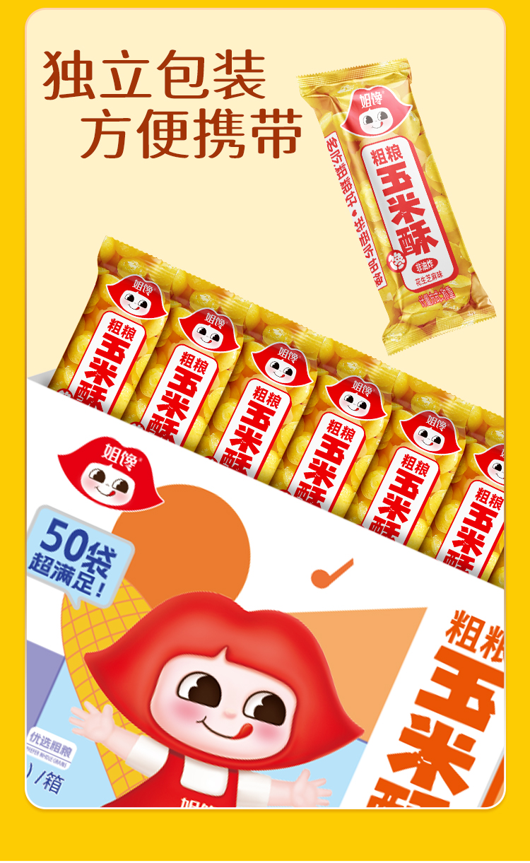 姐馋【粗粮玉米酥】整箱50根经典超值装解馋膨化糕点茶点酥脆小零食