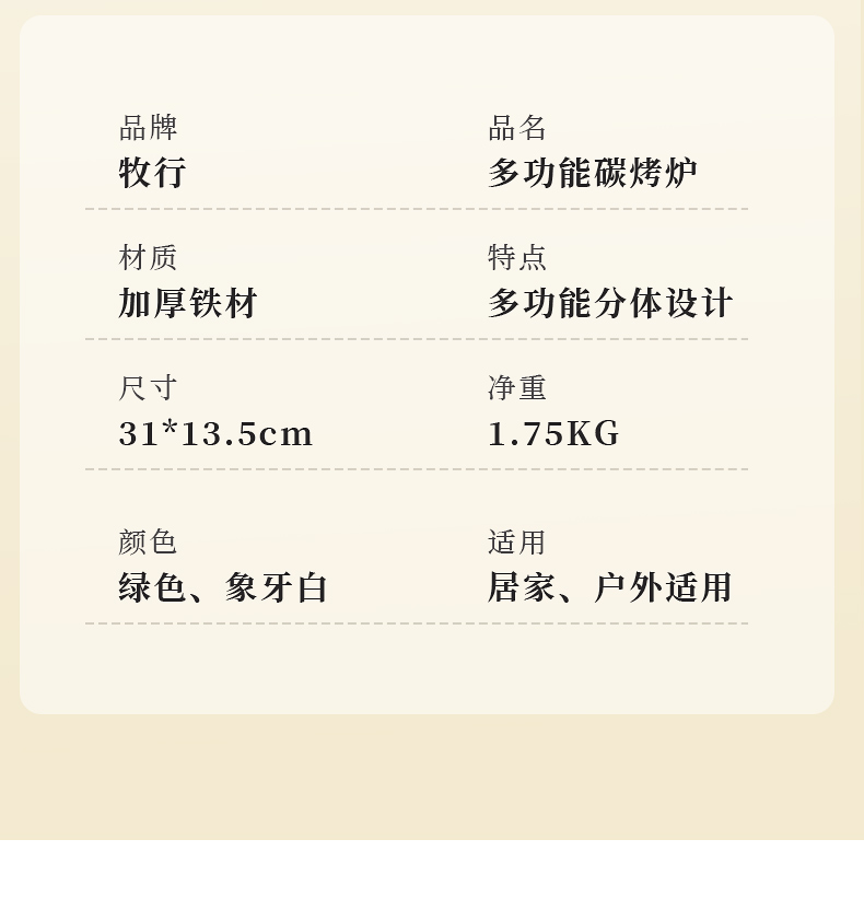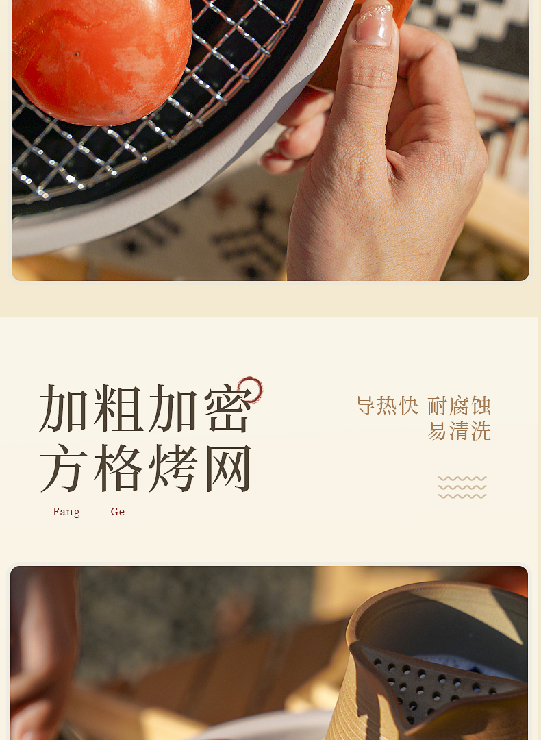 - ¥89.00 【象牙白】不粘烤网套装-送防烫手柄+5斤无烟碳+专用碳夹+酒精块
