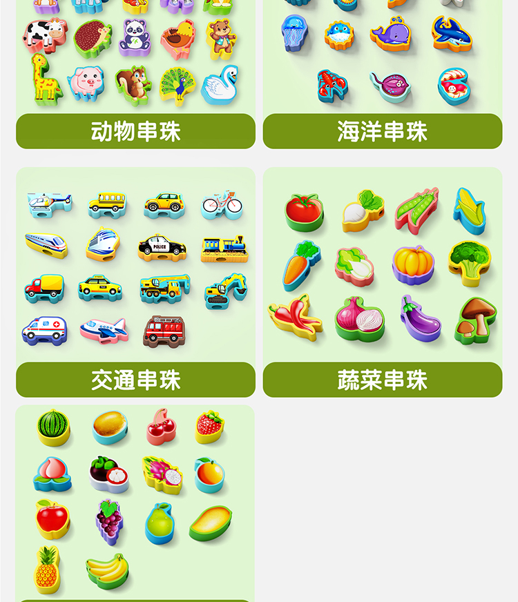 - ¥35.30 84粒【动物+水果+海洋+蔬菜】+8绳子+收纳盒