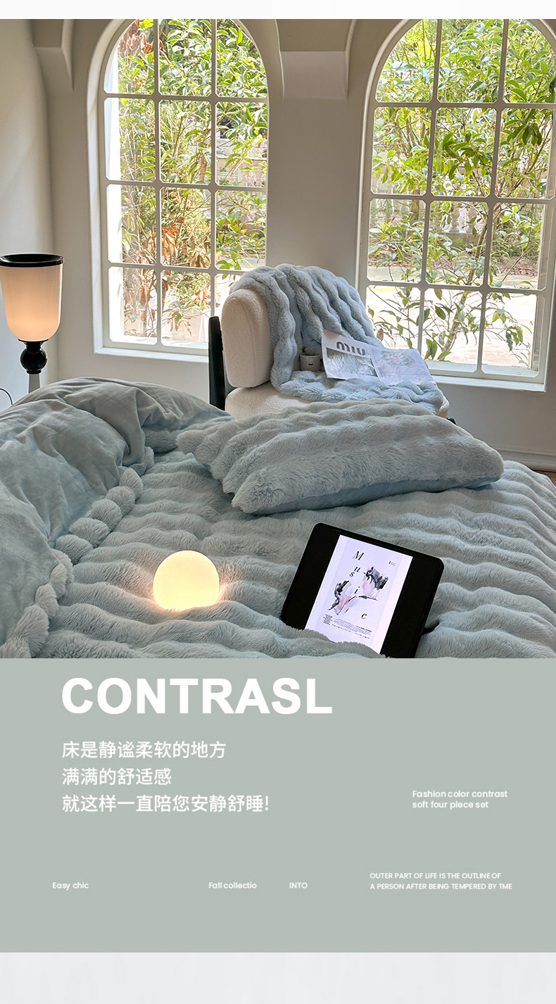 - ¥279.00【一触即暖 不掉毛 高克重】灰蓝色,1.8m床笠款【被套200*230,床笠180*200,枕套48*74*2】