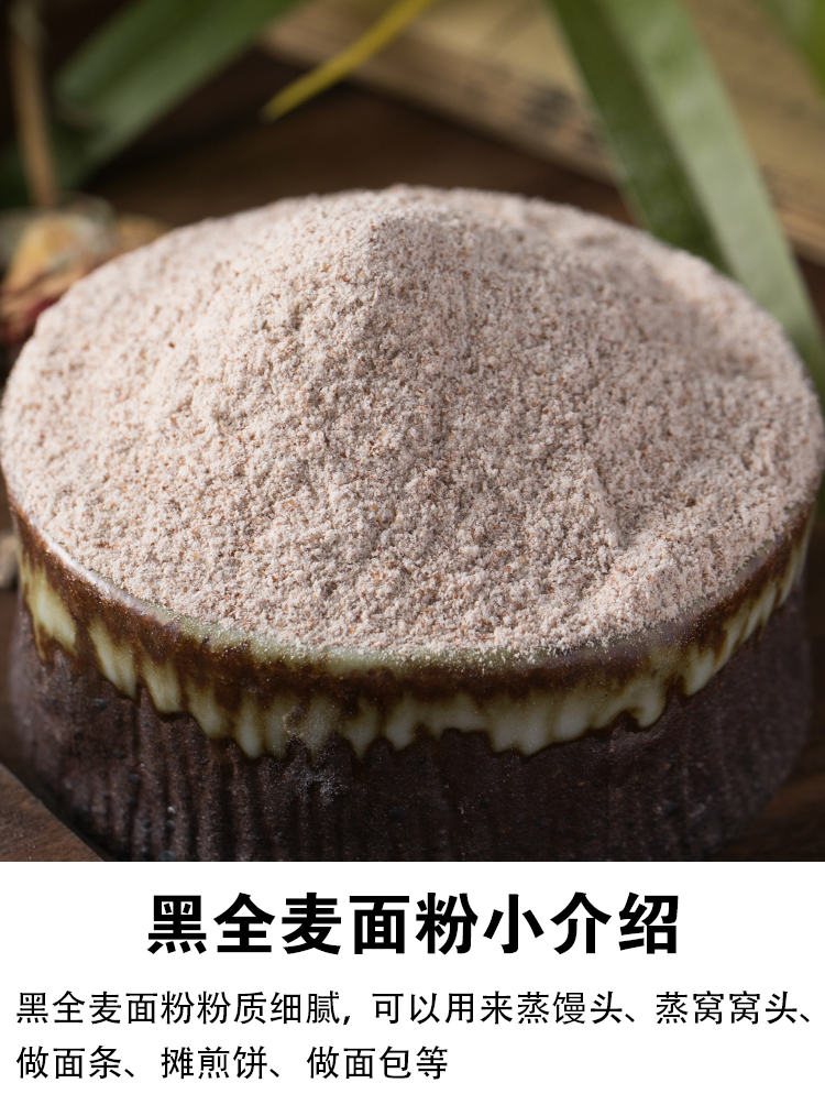 【新品】黑全麦面粉现磨含麦麸面包杂粮吐司窝头黑小麦杂粮粗粮粉