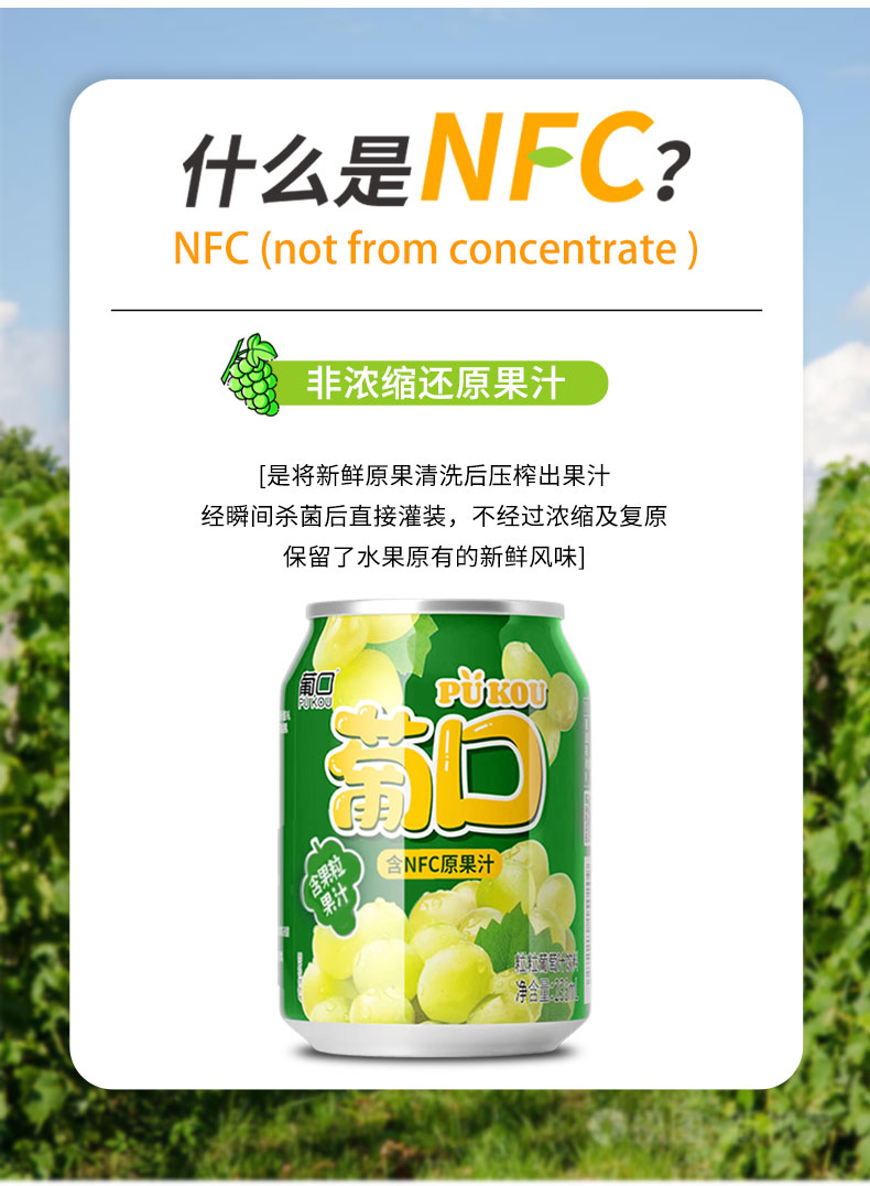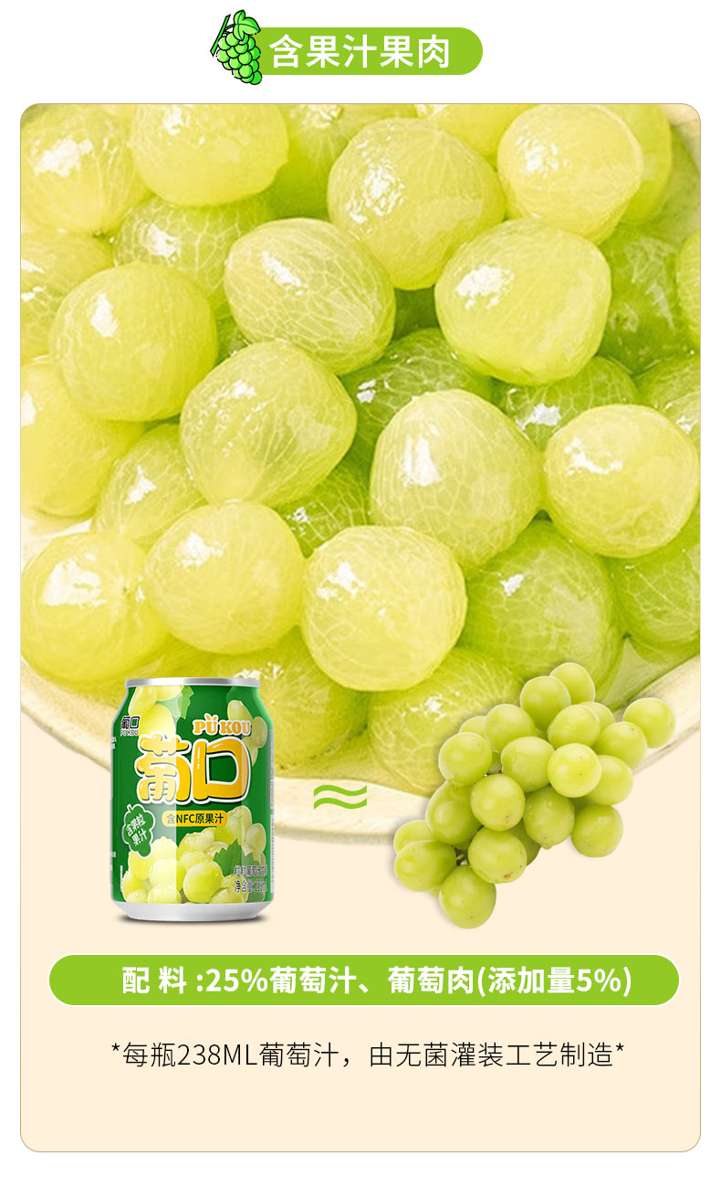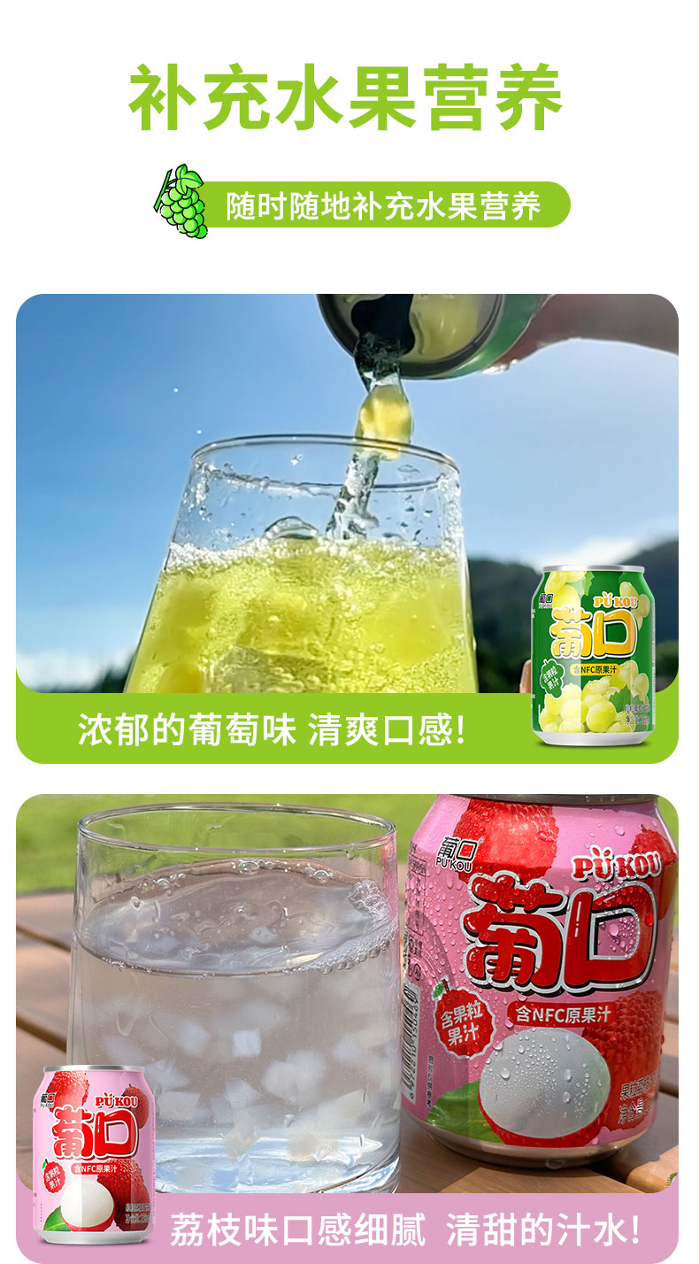 葡口 大果肉果汁葡萄黄桃荔枝草莓混合含NFC原果汁25%果汁含果粒