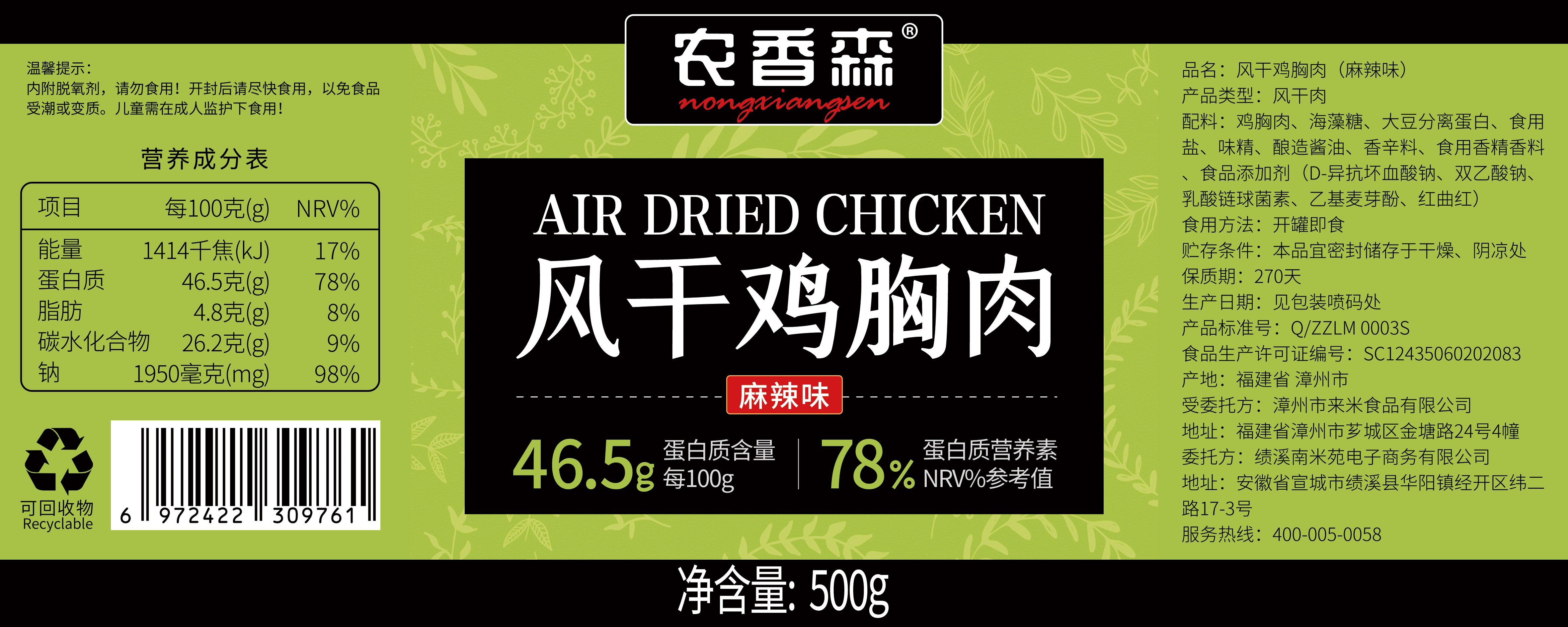 - ¥49.90风干鸡肉干500g*1罐,青花椒味