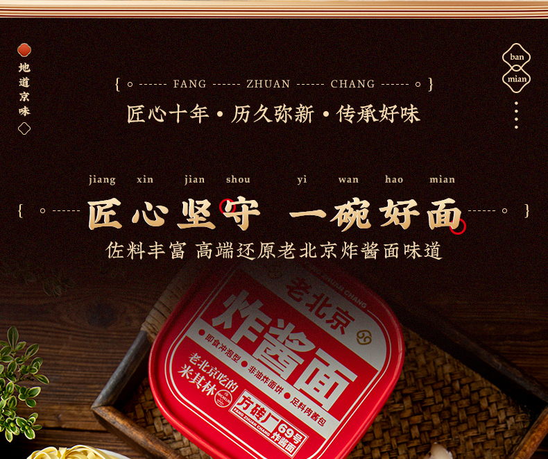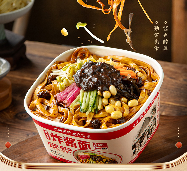 自从在网上发现了这款方砖厂69号的正宗老北京炸酱面,我的速食清单里就多了一份不可多得的美味!首先,包装设计就很吸引人,四桶独立包装,干净卫生又便于携带,无论是加班夜归还是旅行途中,都能轻松享受。