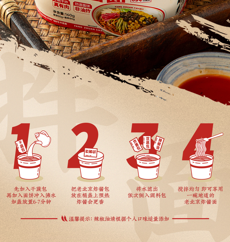 性价比方面,32.9元四桶的价格也相当实惠,平均下来一餐不到十块钱,就能享受到如此地道的老北京风味,真心觉得物超所值。已经推荐给身边的朋友们了,相信他们也会爱上这款方便又美味的炸酱面!