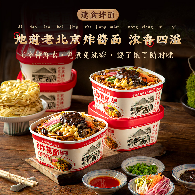 - ¥49.90 老北京炸酱面(冲泡版)160g*3桶+葱油炸酱面(冲泡版)136g*3桶
