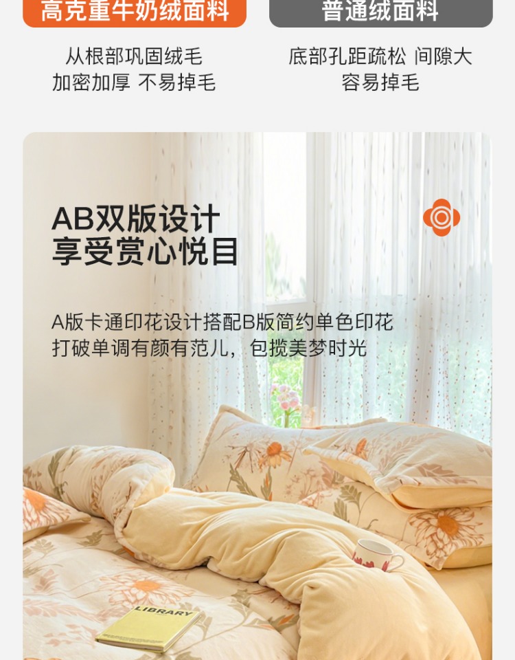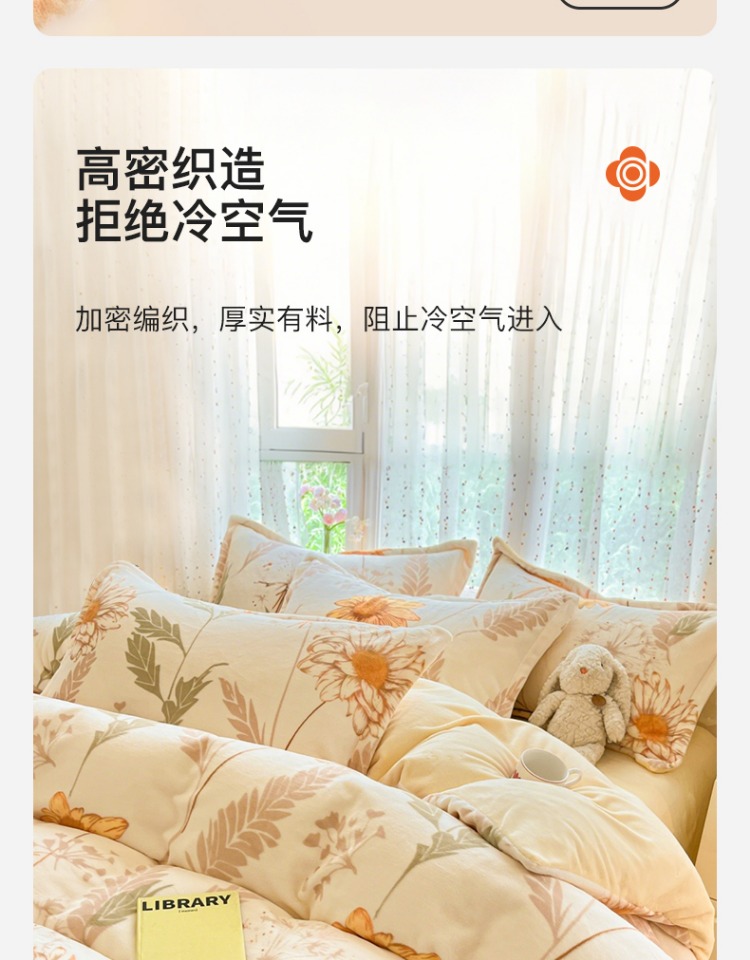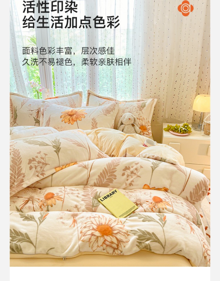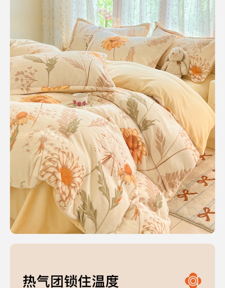 - ¥158.00 木槿花【双面加厚加绒 恒温保暖】,1.5-1.8m【床单款四件套】-适合200x230cm被芯