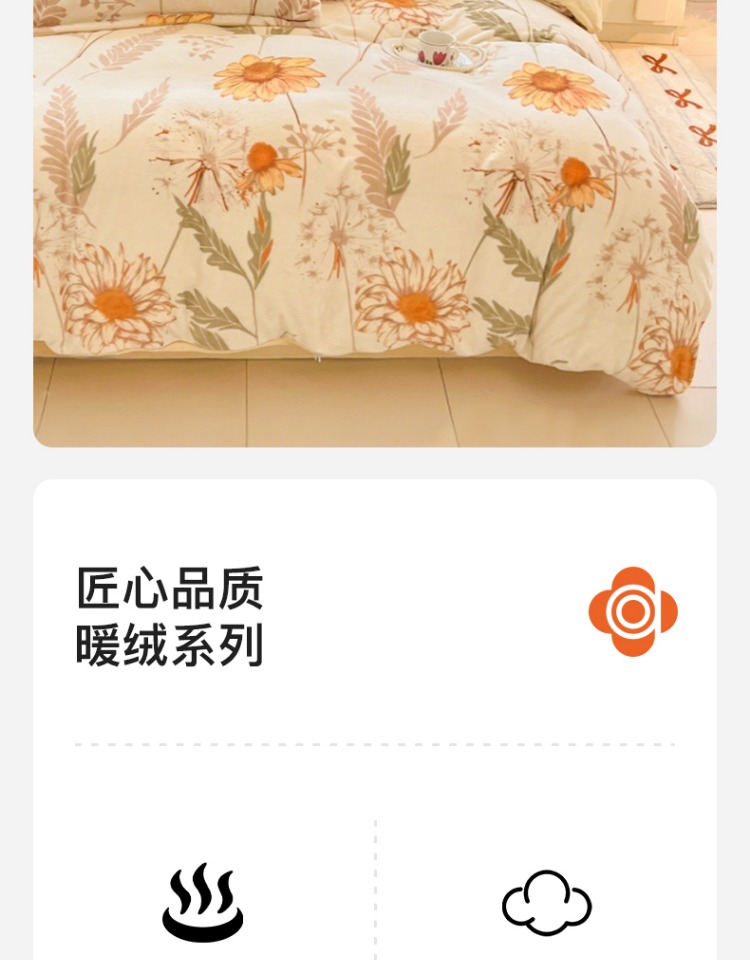 - ¥178.00 木槿花【双面加厚加绒 恒温保暖】,2.0m床【床单款四件套】-适合220x240cm被芯