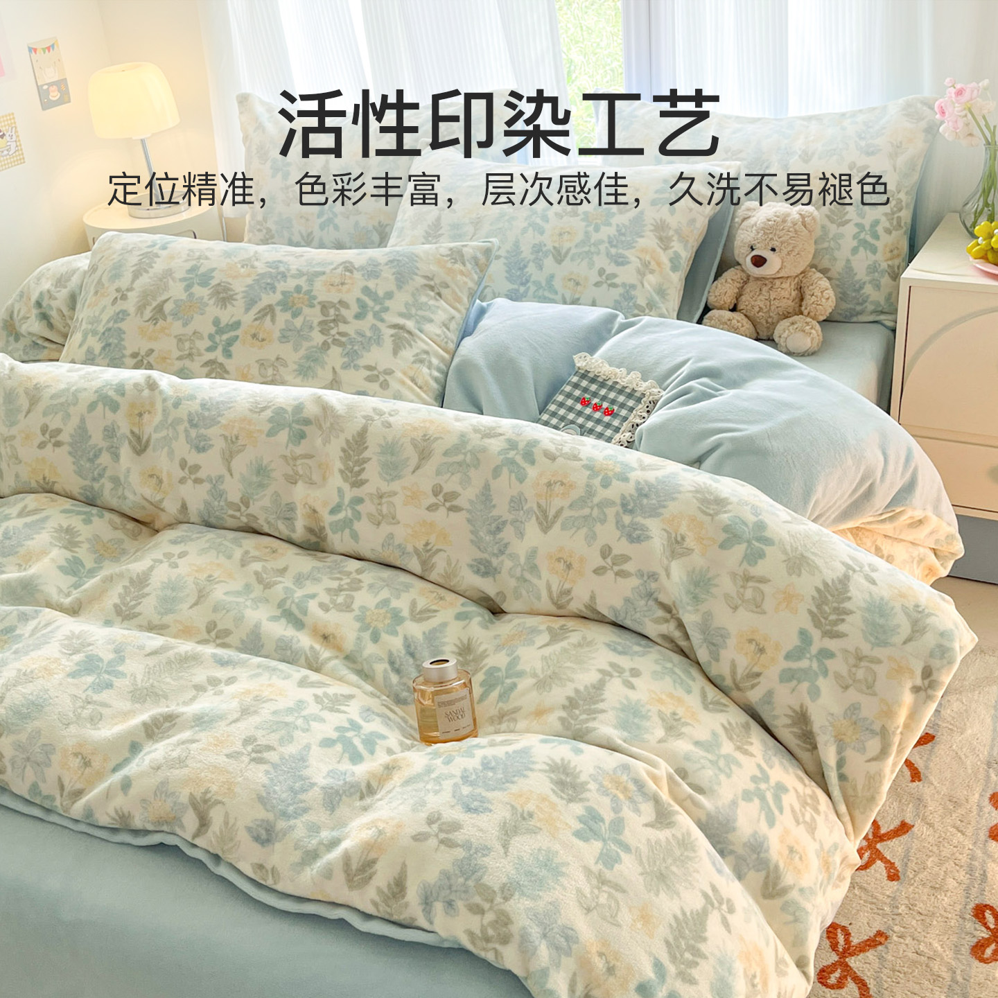 - ¥158.00 花下喵戏-蓝【双面加厚加绒 恒温保暖】,1.5-1.8m【床单款四件套】-适合200x230cm被芯