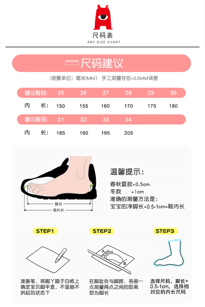 - ¥124.90 粉色【旗舰款】,31(内长18.5cm适合脚长18.0cm)
