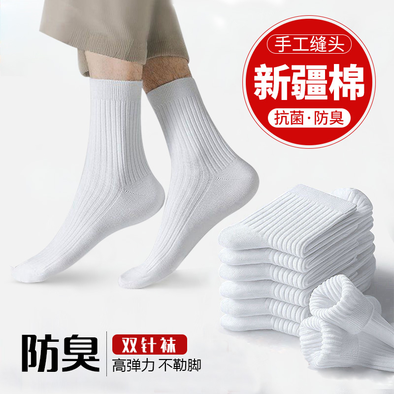 - ¥16.99男高筒【白色】5双,均码【男袜38-44码-女袜34-40码】吸汗防臭抗起球