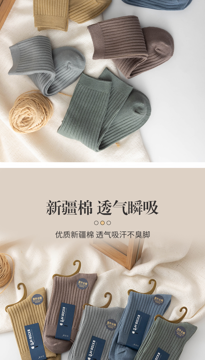 - ¥16.99女中筒【彩色】5双,均码【男袜38-44码-女袜34-40码】吸汗防臭抗起球