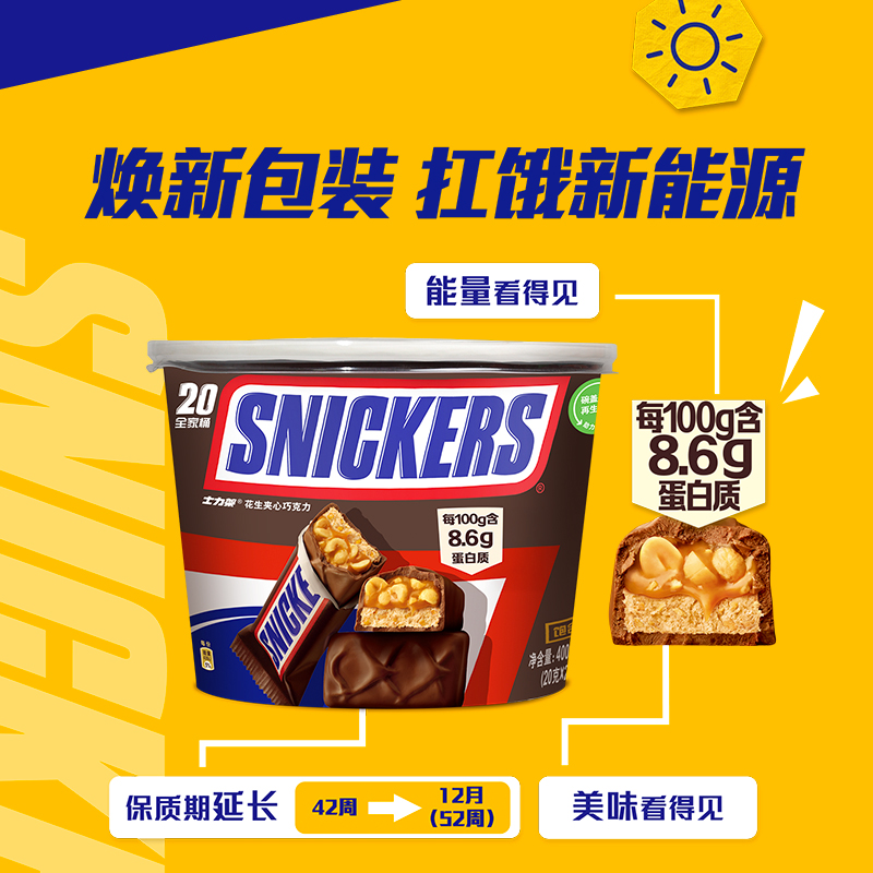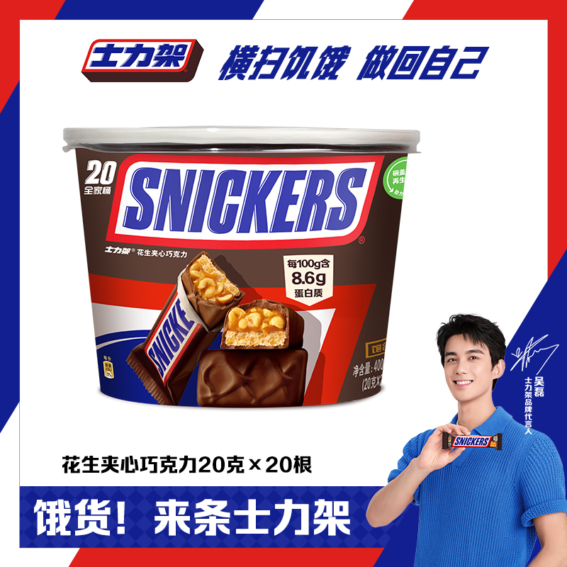 Snickers/士力架扛饿新能源牛奶花生夹心巧克力400g休闲充饥零食