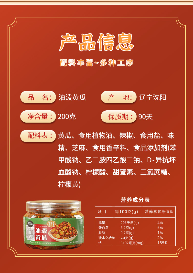非常满意这次的购物体验!这款【罐装】油泼黄瓜真是让我大开眼界,咸香甜辣的味道完美融合,每一口都是满满的惊喜。蜜汁的甜与黄瓜的清新相结合,再加上恰到好处的辣味,吃起来既开胃又解腻,绝对是夏日里不可或缺的下饭神器。