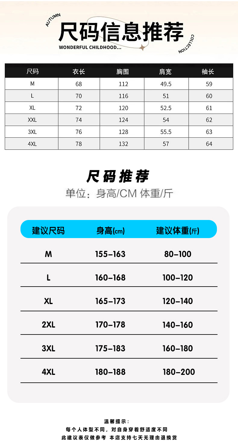 - ¥69.00奶白色(加绒加厚),4XL(180-200斤)