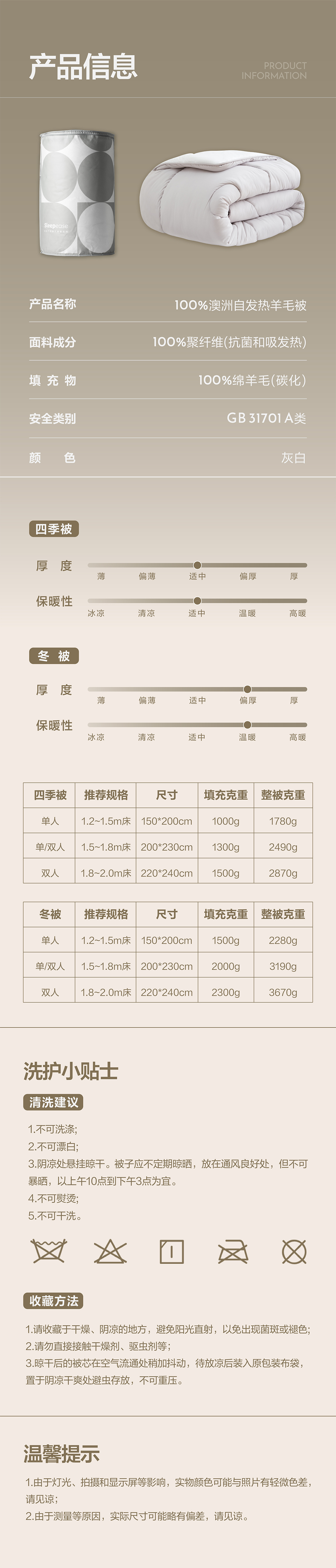 - ¥209.002代四季被:200*230cm填充物重量:1300g