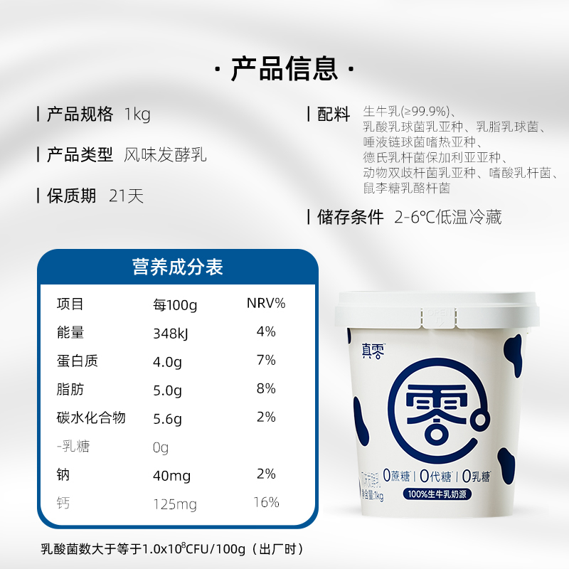 【热销推荐】真零酸奶1KG桶装酸奶无添加蔗糖代糖0乳糖G