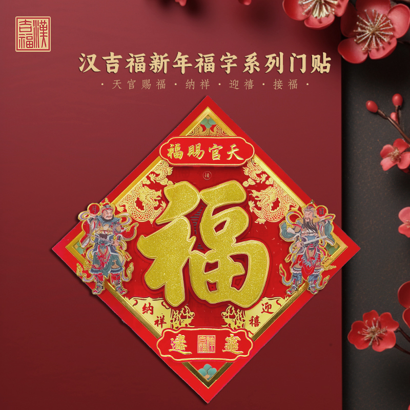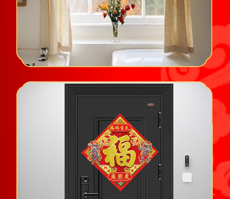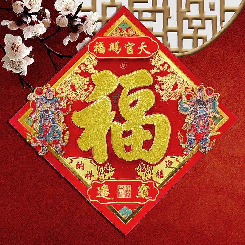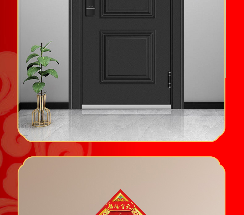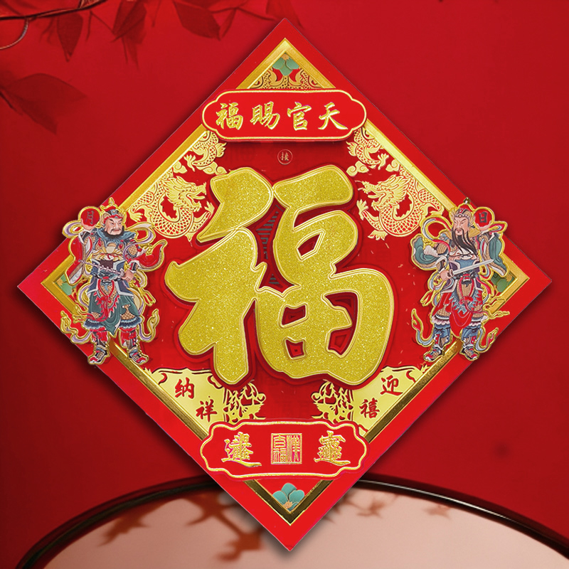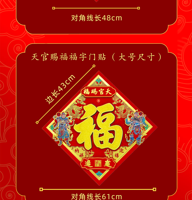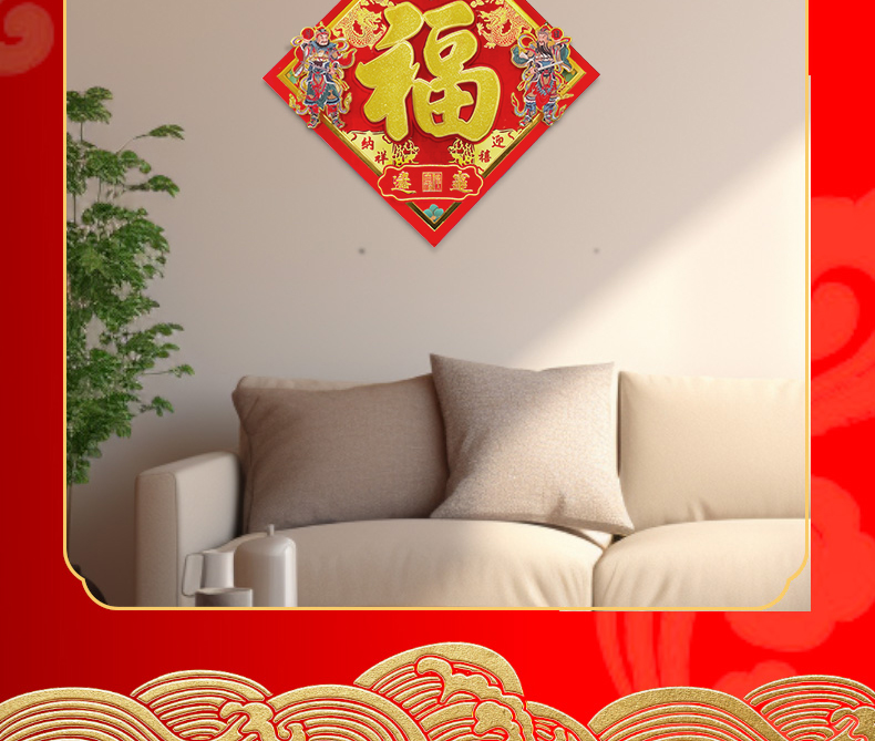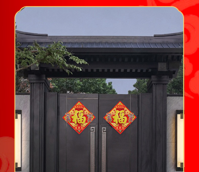 城市商品房单门组合立体福字门贴植绒烫金日月门神创意年画贴纸
