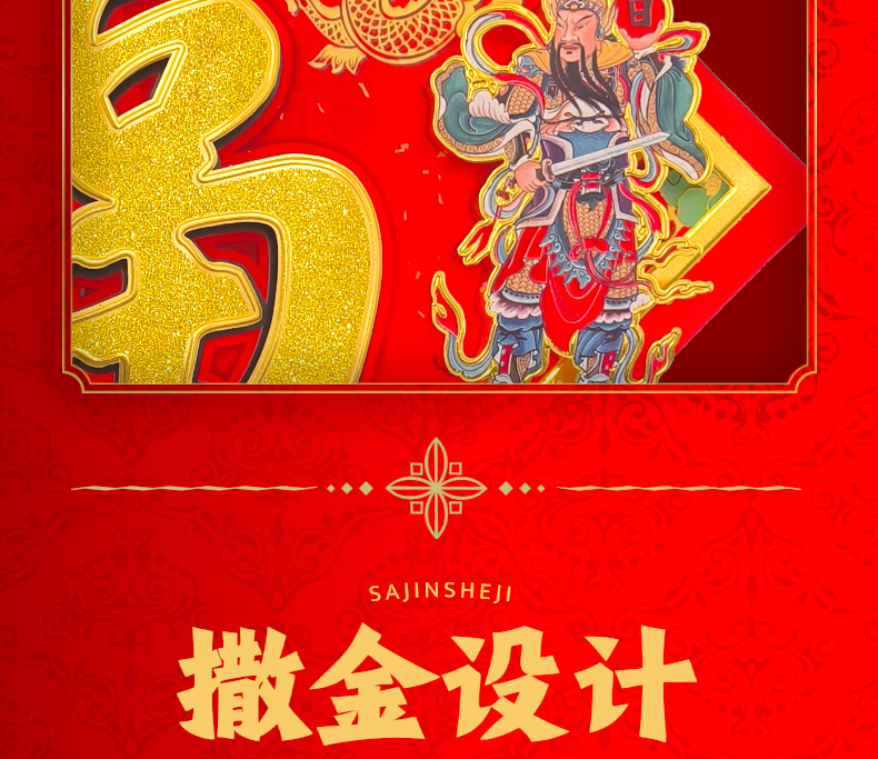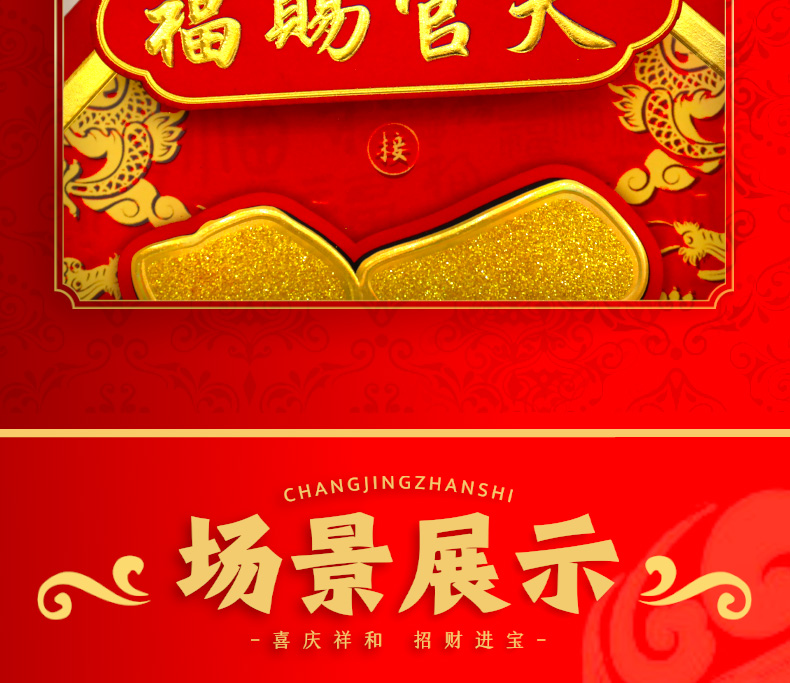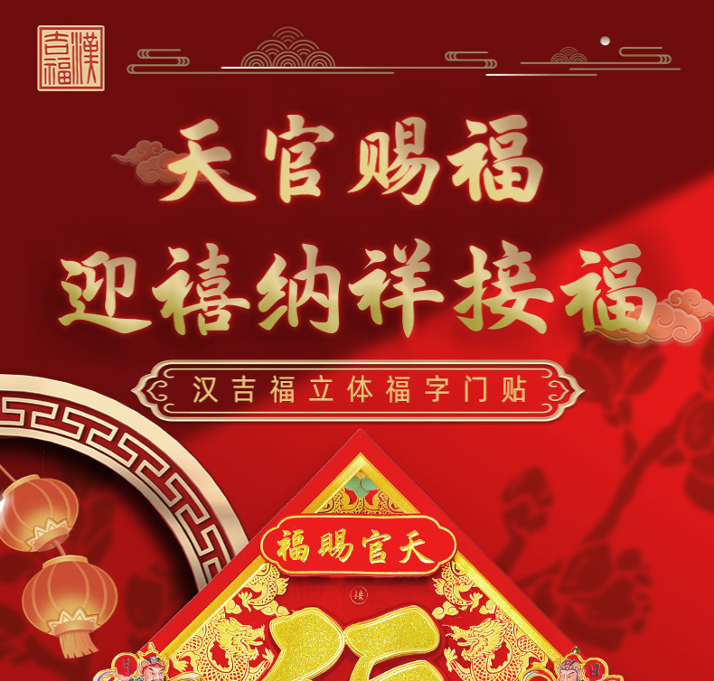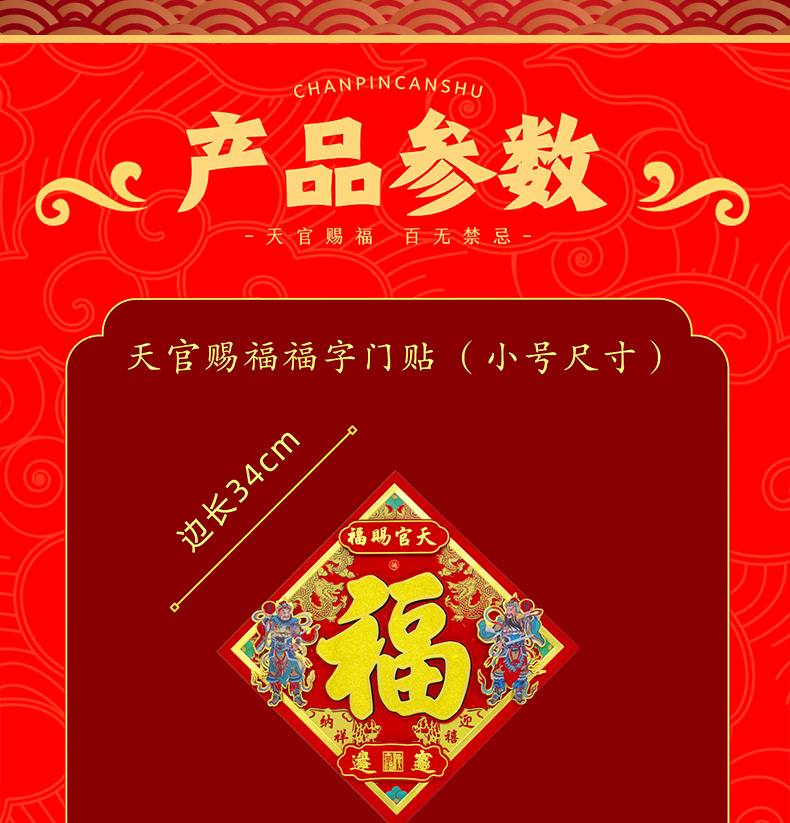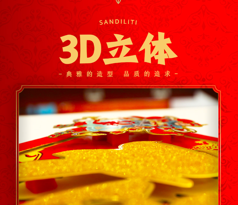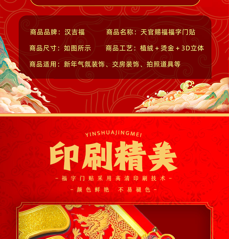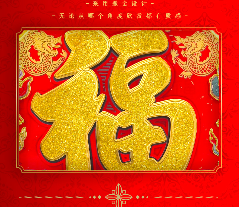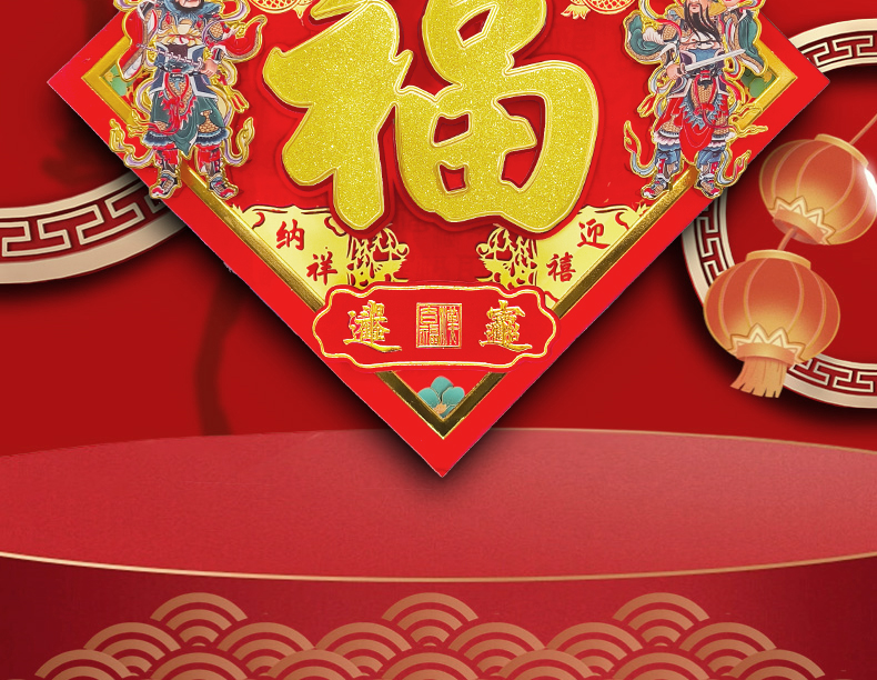 城市商品房单门组合立体福字门贴植绒烫金日月门神创意年画贴纸