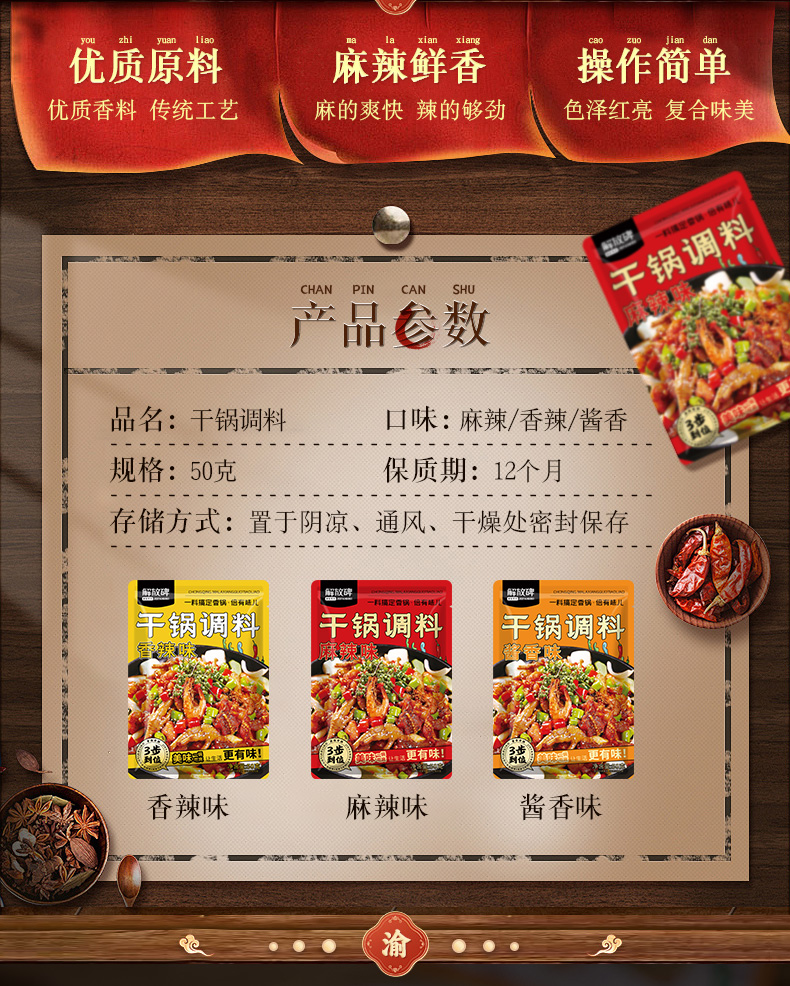 该商品卖点突出:适用人群广泛,无论是嗜辣者、偏爱酱香者,还是追求口味多样的人群都能找到心仪之选。适用场景多样,家庭烹饪、朋友聚餐皆可使用,轻松做出地道川味。价格亲民实惠,