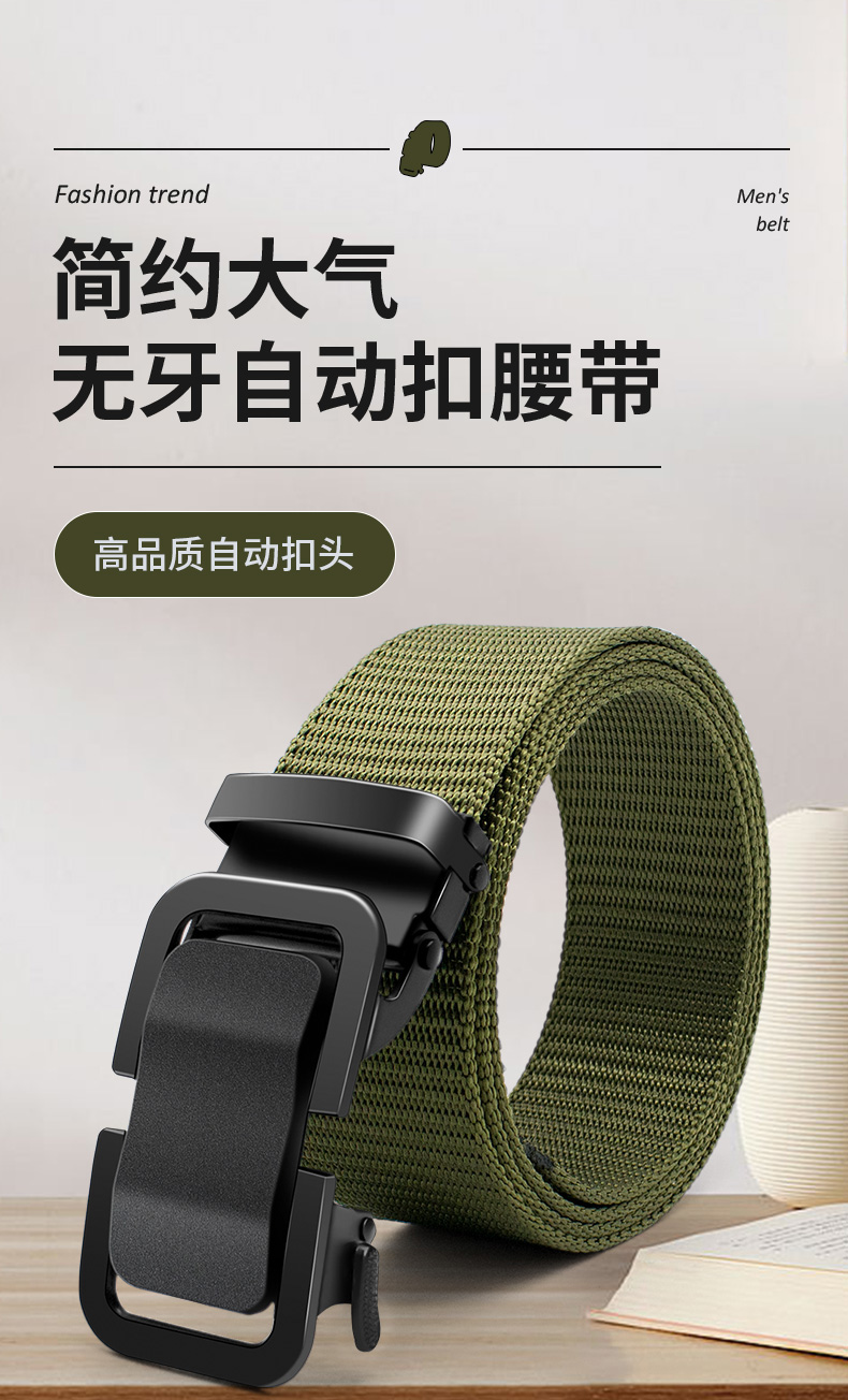 帆布皮带男士自动扣腰带中青年商务学生军训百搭韩版潮流牛仔裤带