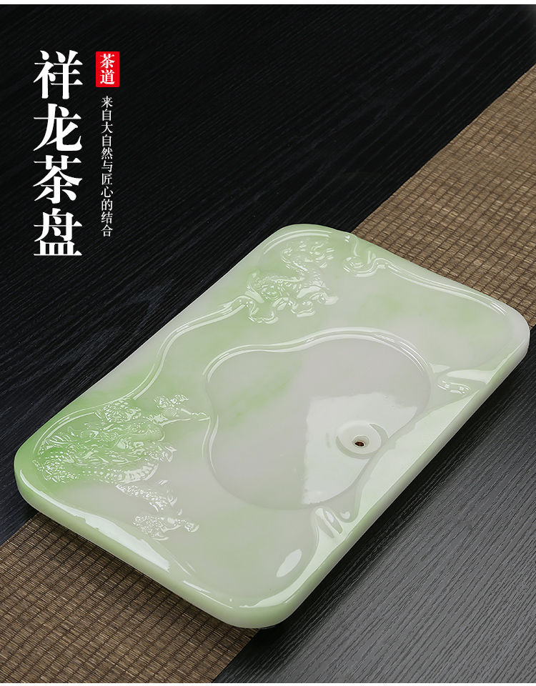 - ¥198.00 长40宽25高2.5,祥龙茶盘绿色5