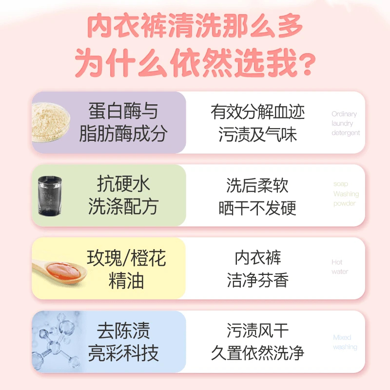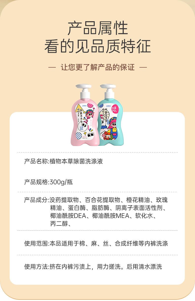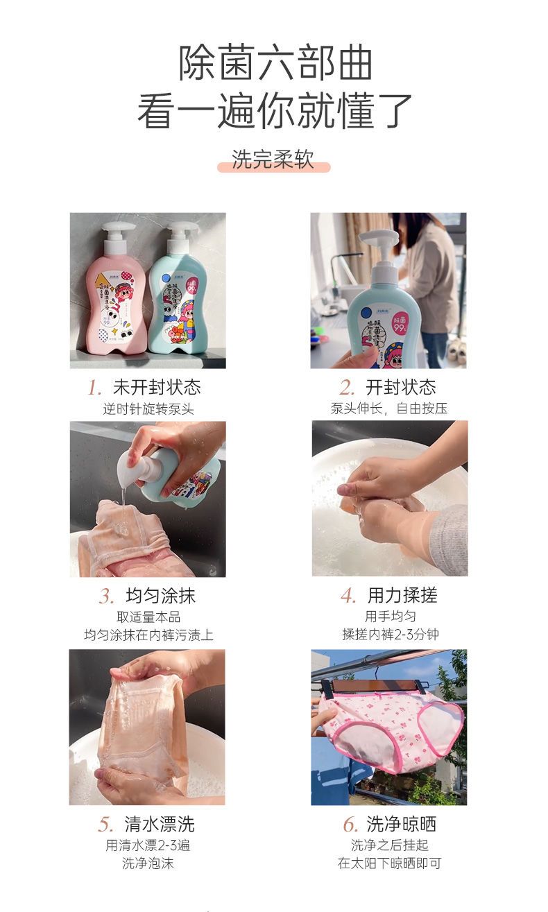 妇炎洁植物草本清洗液女士祛血渍去污除菌贴身内衣裤专用洗衣液TZ
