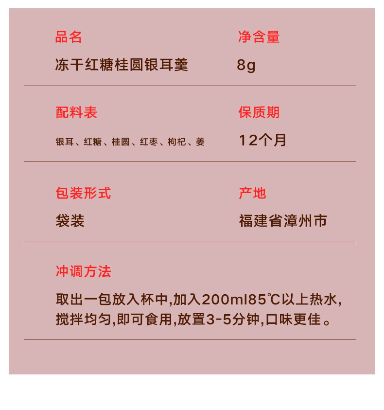 - ¥26.60红糖桂圆姜枣银耳羹8g*27包