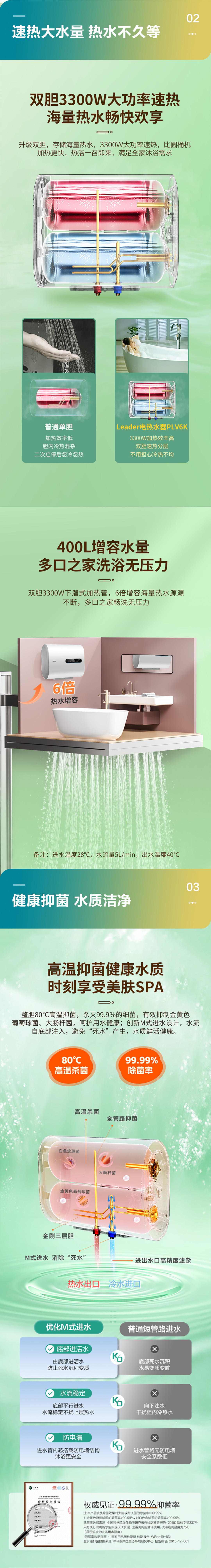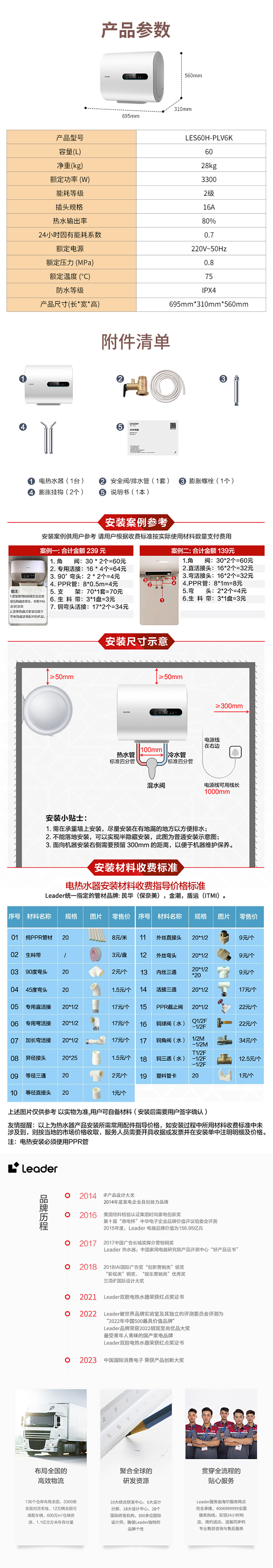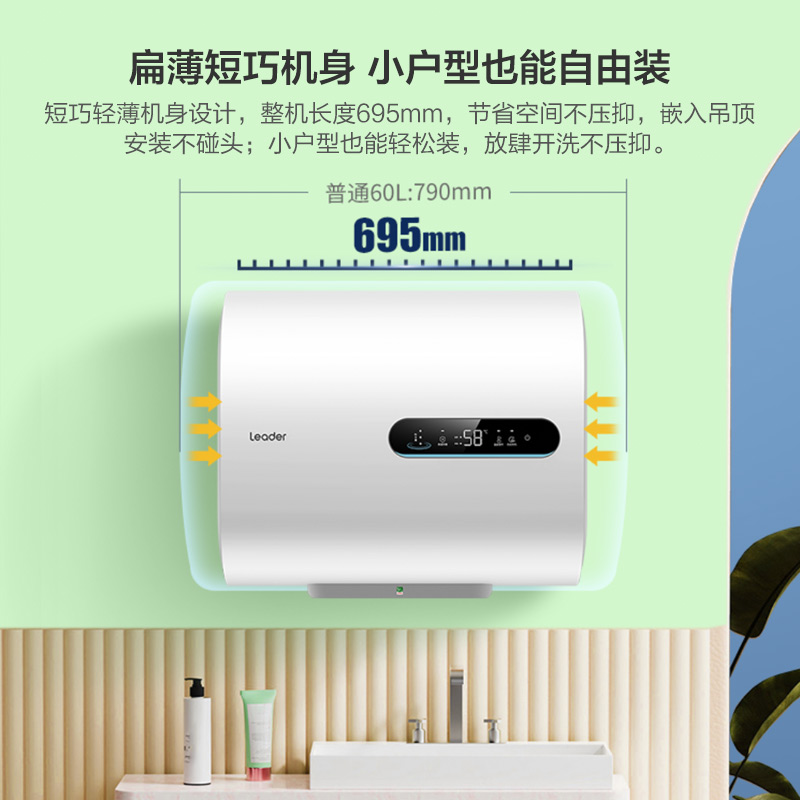 【国补85折】海尔/Leader电热水器双胆速热节能家用60升储水式PLV6K