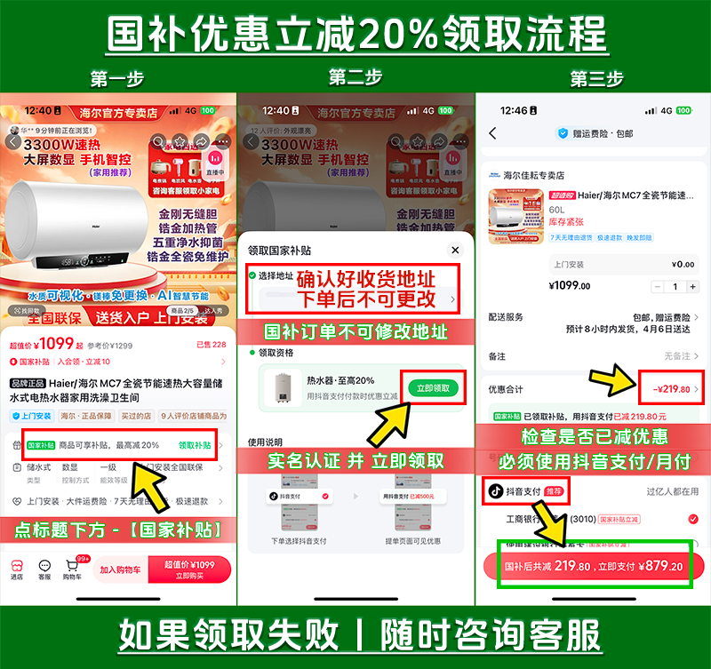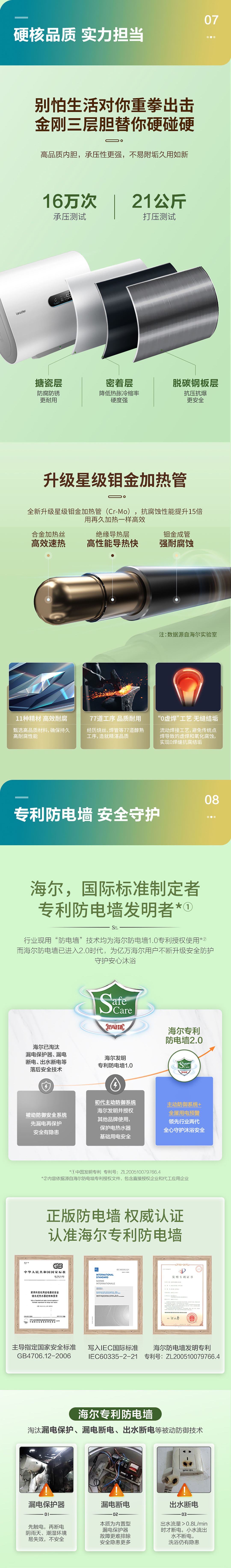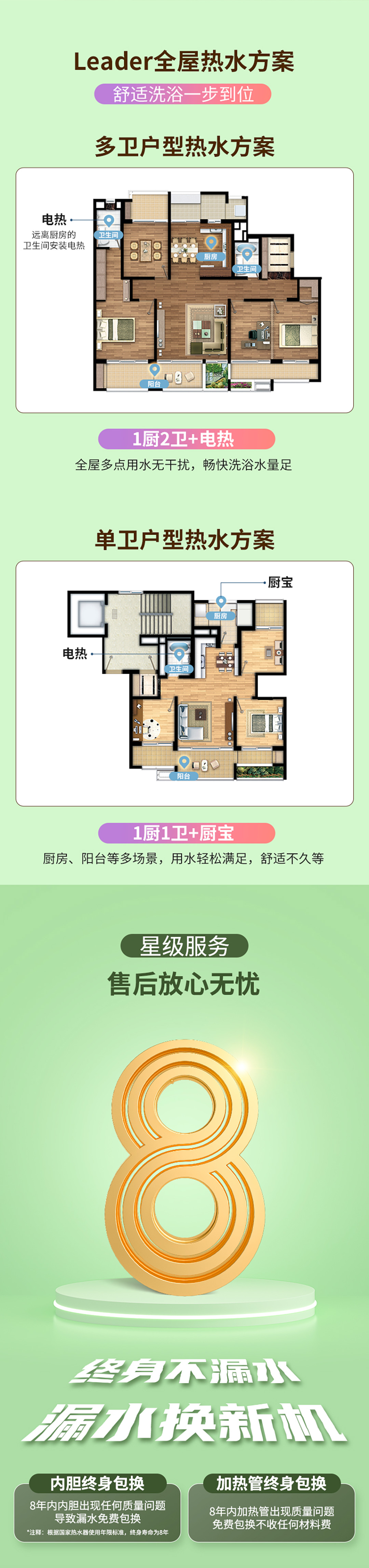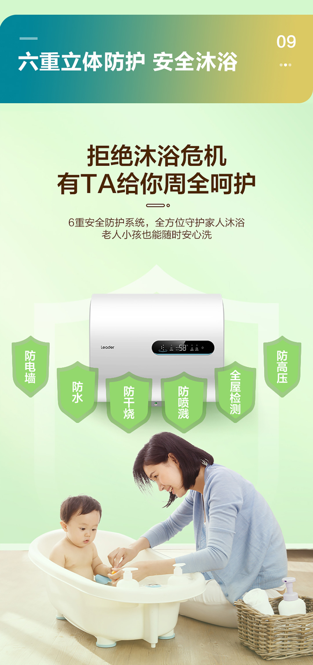 【国补85折】海尔/Leader电热水器双胆速热节能家用60升储水式PLV6K