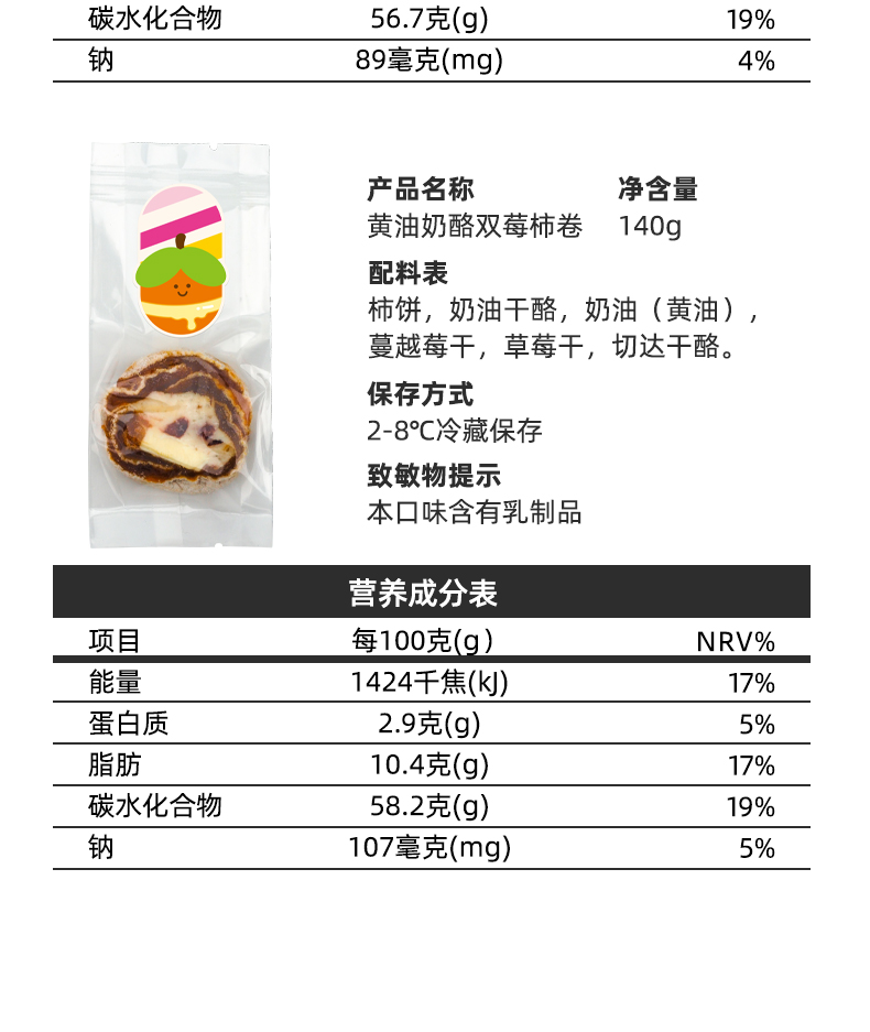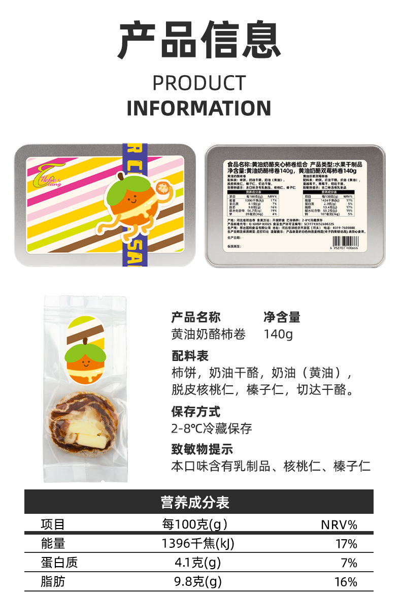 - ¥69.90 黄油奶酪夹心柿卷双拼(双莓+坚果),黄油奶酪坚果柿卷280g*1盒