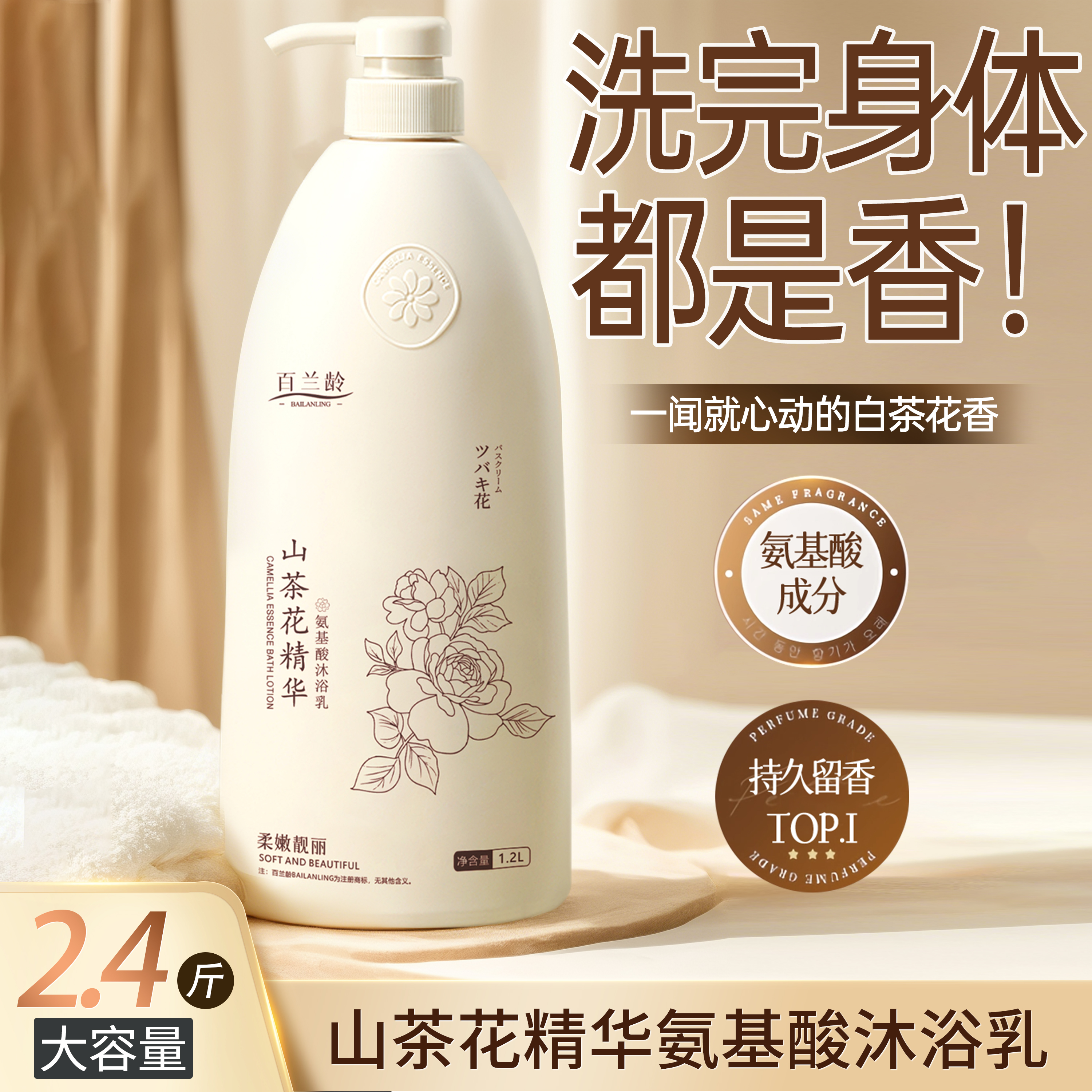 【2.4斤装】山茶花氨基酸沐浴露持久留香滋润保湿沐浴乳家庭大瓶装