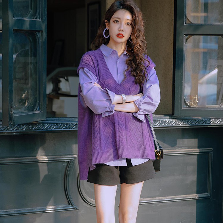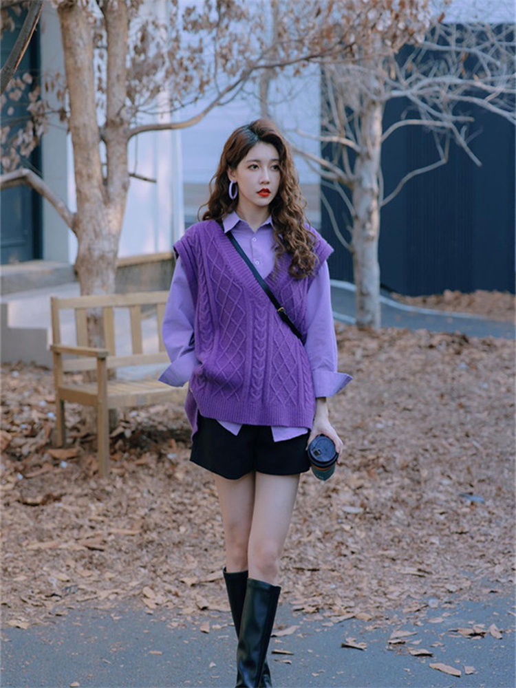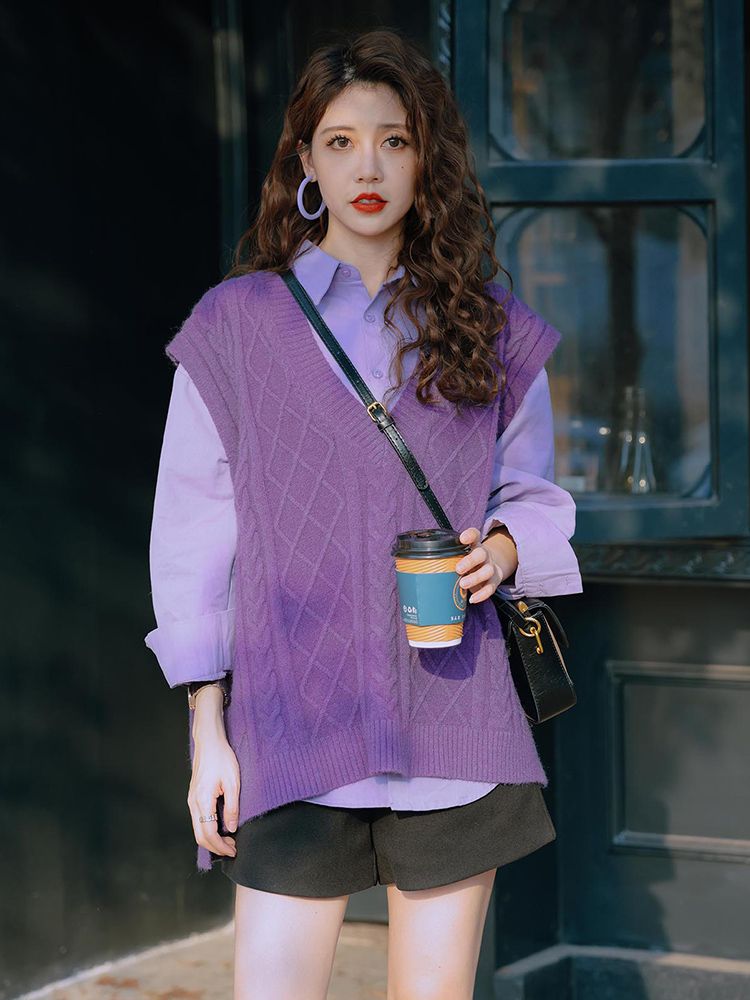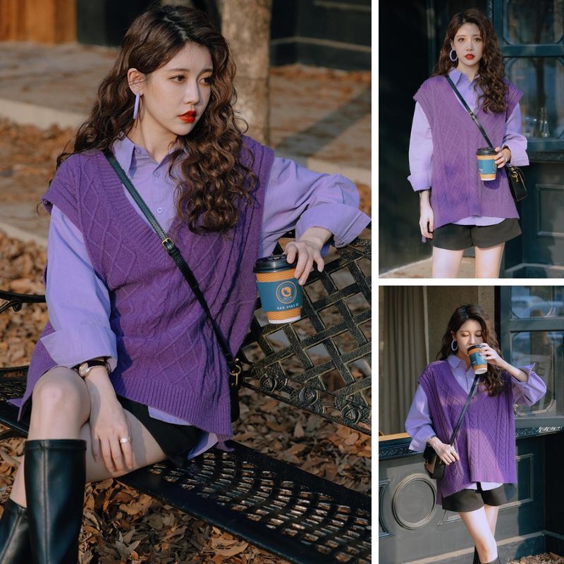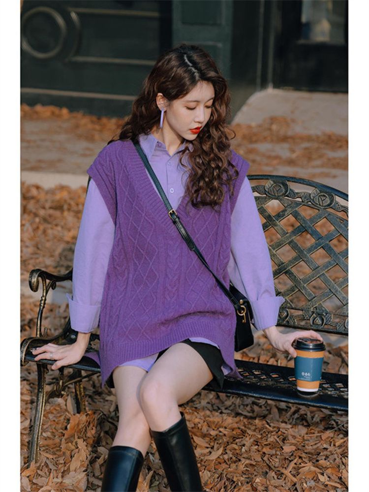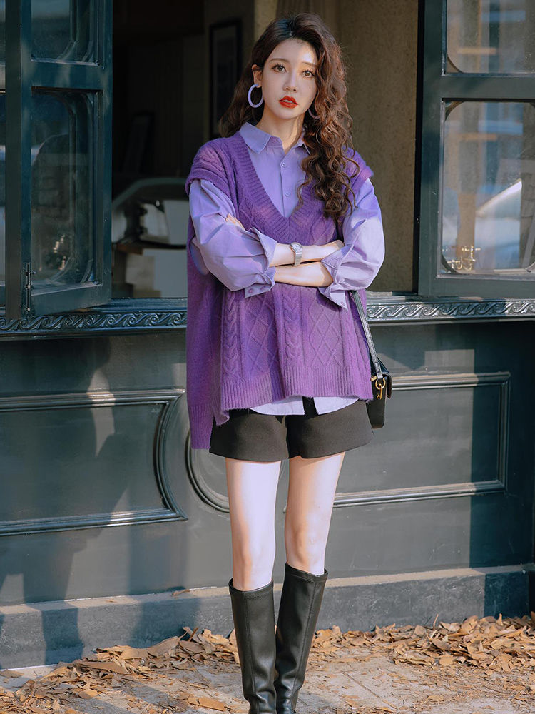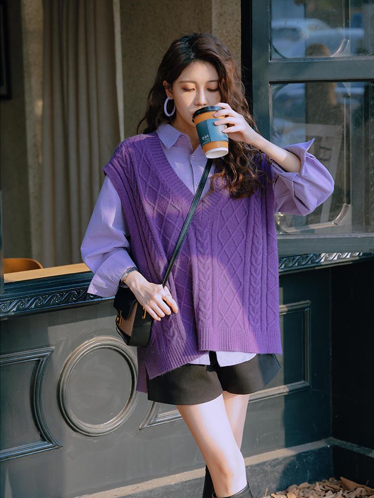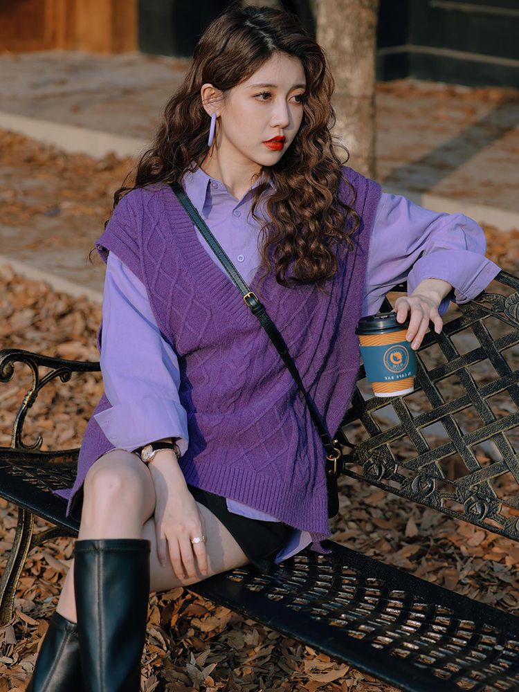 - ¥69.90 紫色衬衫+紫色马甲,3XL(建议【160-180】)