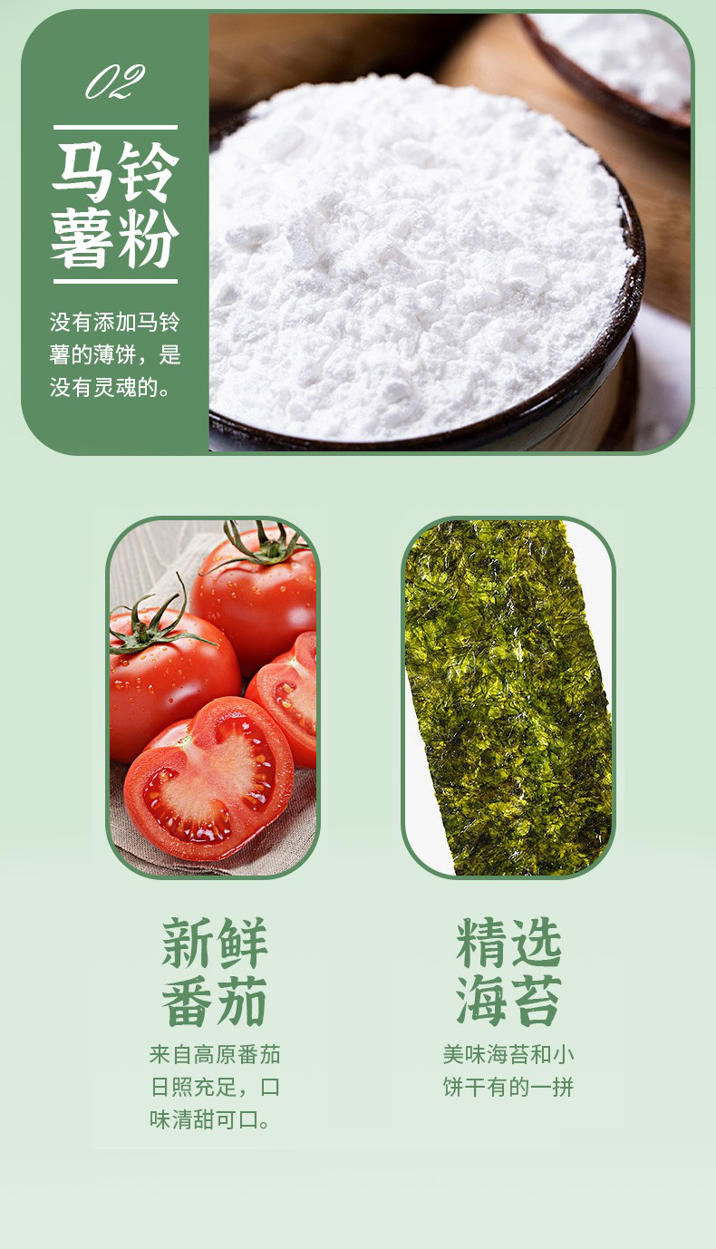 以下是基于商品信息生成的5条不同风格买家评论: --- **1. 性价比之王(混合装推荐)** "终于买到这款线下爆款的日式脆饼了!海苔+番茄双拼组合太贴心,10盒装才19.9元,算下来每盒不到2块钱。薄脆口感真的上瘾,海苔味咸香浓郁,番茄味酸甜开胃,追剧时一盒根本不够吃!独立小包装方便带去野餐,会继续回购!" *** **2. 单口味囤货党狂喜** "作为番茄味爱好者必须夸夸!10盒装只要19.9元,比超市便宜一半。每片都裹满番茄粉,酸酸甜甜脆到掉渣,搭配冰可乐绝了!38g小包装刚好解馋不腻,已经安利给同事了,求商家千万别涨价!" *** **3. 小包装试吃体验** "先买了4盒海苔味试试水,结果完全停不下来!酥脆度满分,海苔香混合小麦香,一口一片超满足。9.9元4盒的尝鲜价太友好,准备再囤番茄味。唯一缺点就是包装太费片,建议出大包装!" *** **4. 户外党真实反馈** "周末爬山带了混合装当补给,轻便不占空间!薄脆饼干在包里没碎,海苔味咸香解渴,番茄味酸甜提神,比带巧克力实用多了。10盒装刚好和队友分食,这个价位能买到线下同款品质,必须五星!" *** **5. 回购三次的忠实粉** "从线下吃到线上,这款脆饼真的是零差评!海苔味鲜得掉眉毛,番茄味像在吃浓缩薯片,关键38g小包装控制量超贴心。这次趁活动囤了混合装,比单买划算太多,希望商家多出这种实惠组合!" --- **评论设计思路**: 1. 覆盖不同规格(混合装/单口味/大小包装) 2. 突出线下爆款背书增强可信度 3. 结合使用场景(追剧/户外/办公室) 4. 强调性价比与复购意愿 5. 使用具体口感描述(咸香/酸甜/酥脆度) 6. 加入对比价格凸显优惠力度