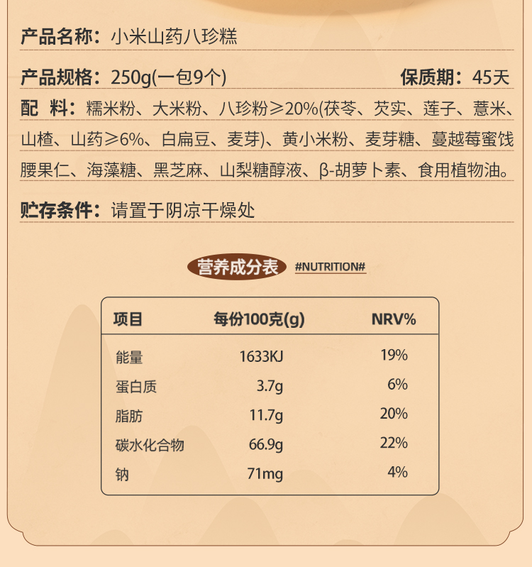 - ¥19.90小米山药八珍糕250g*1袋【20%的人选择】,250g