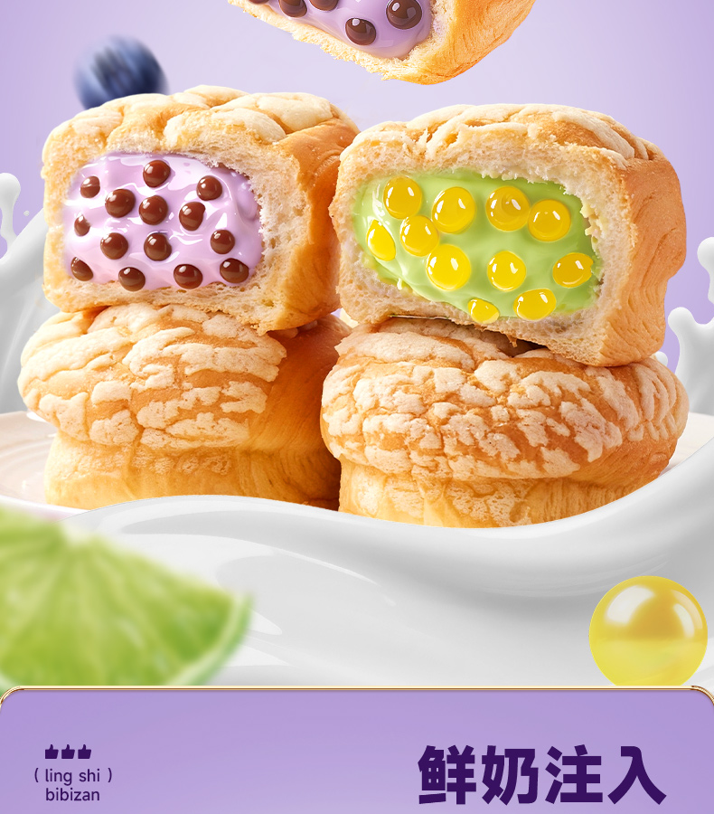 标题:美味与健康的完美结合——比比赞啵啵爆珠流心面包