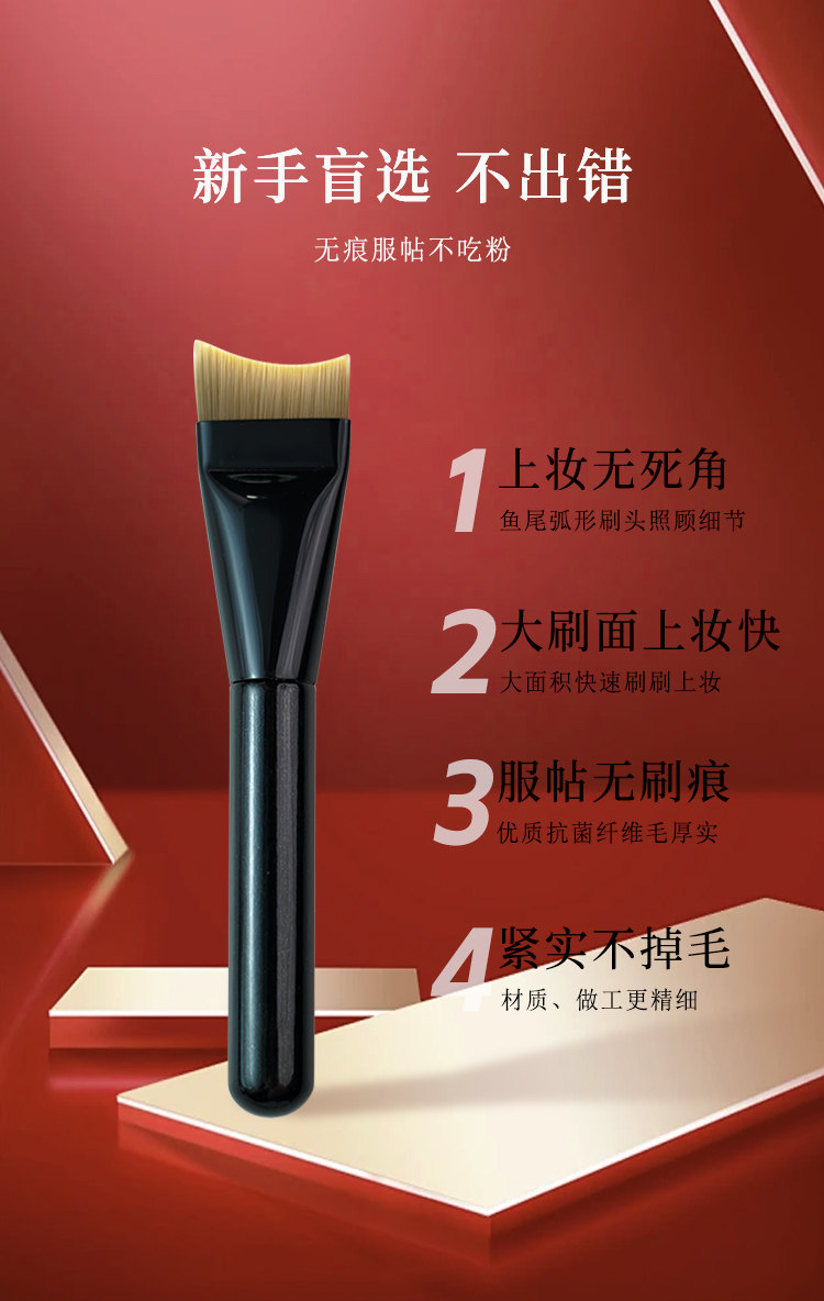 卡丽色月牙一字弧形超薄型无痕粉底刷不吃粉化妆刷一件组合装