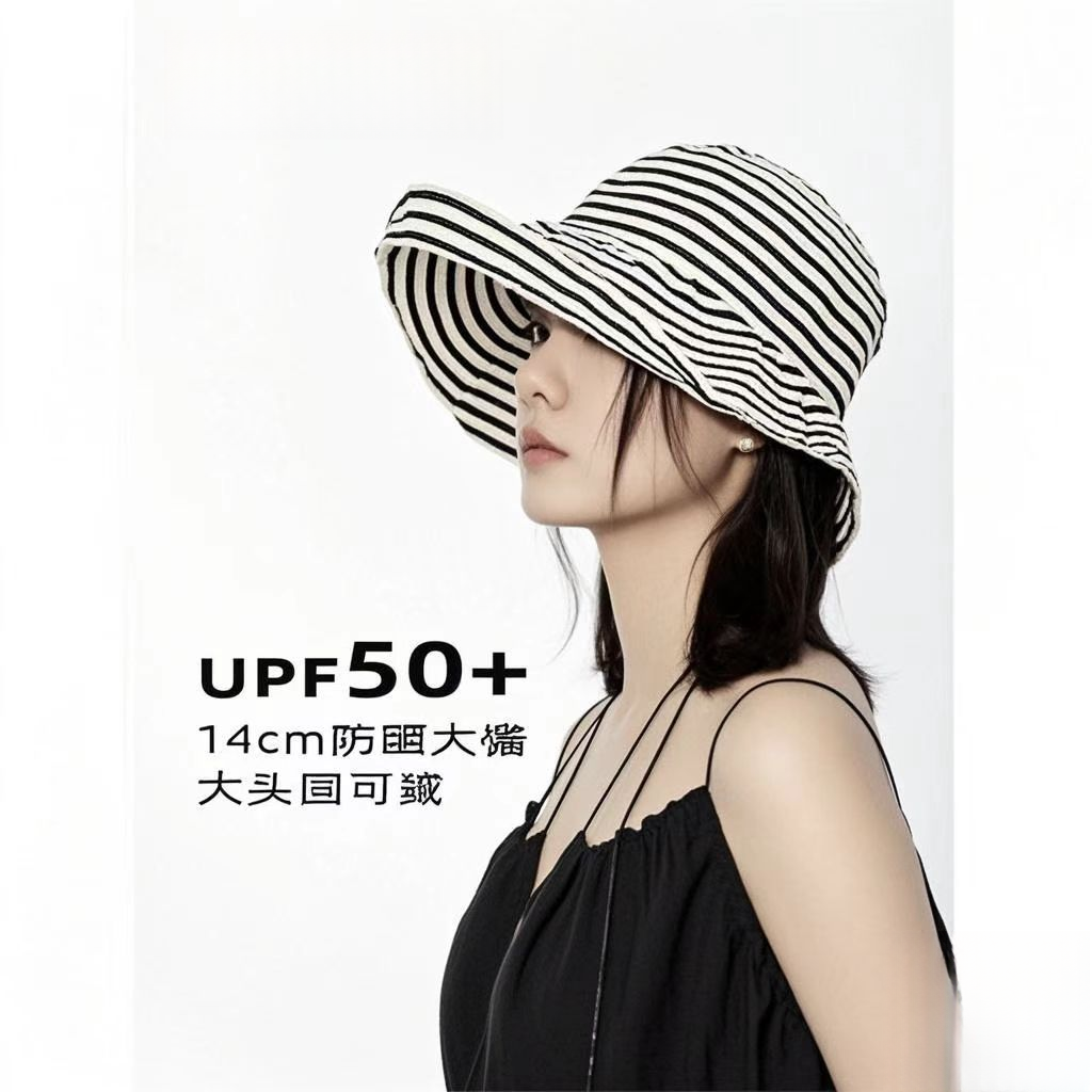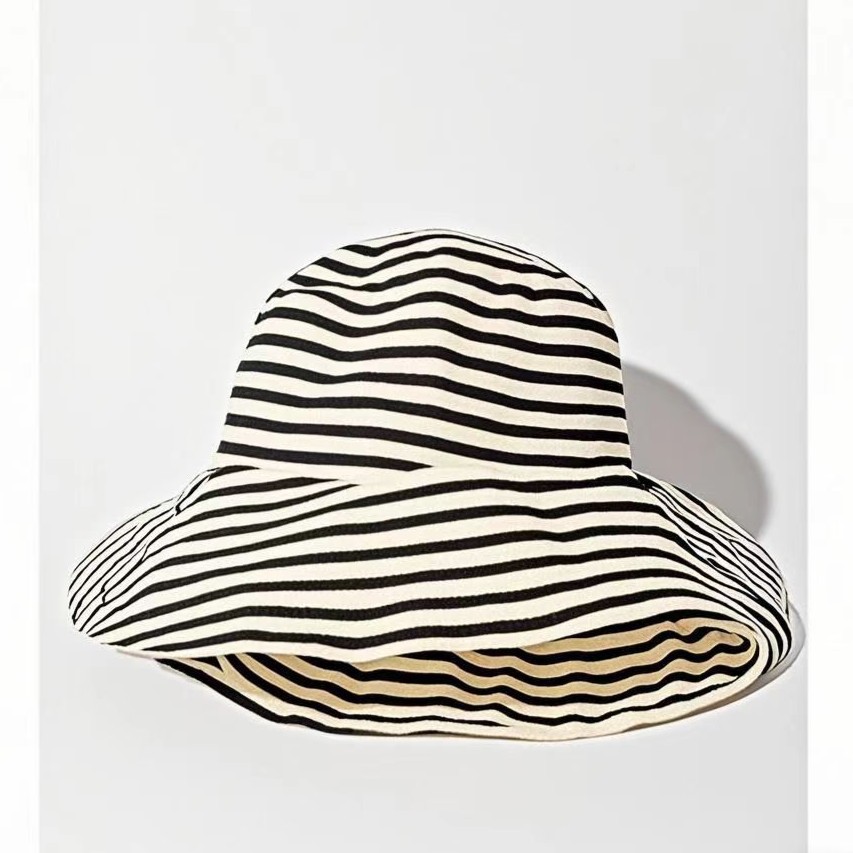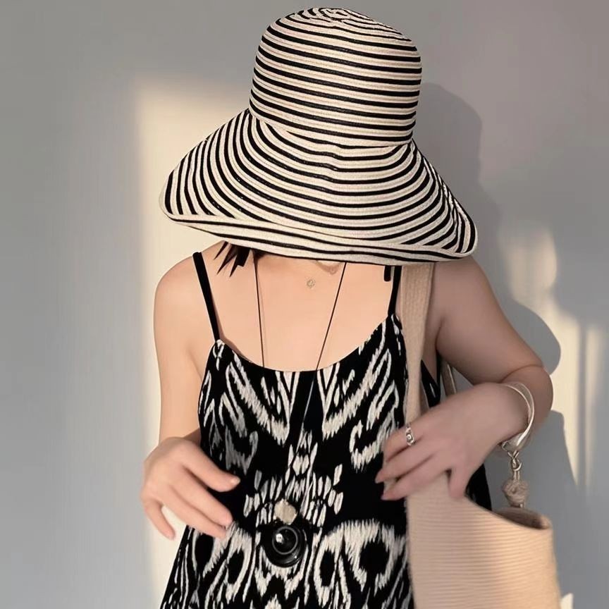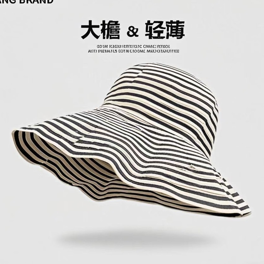 韩版春夏季户外出游时尚百搭条纹帽渔夫帽可折叠遮阳帽防紫外线