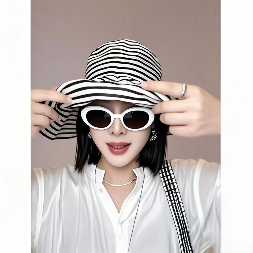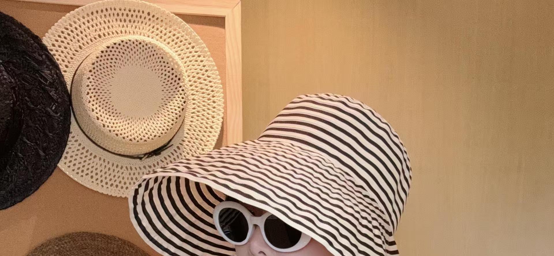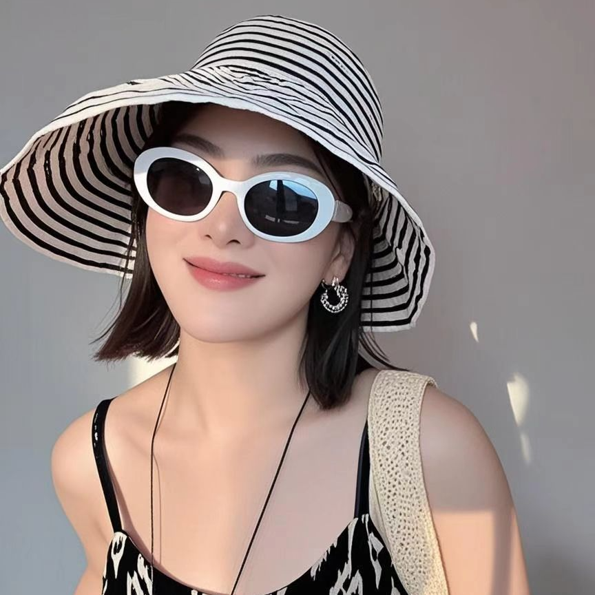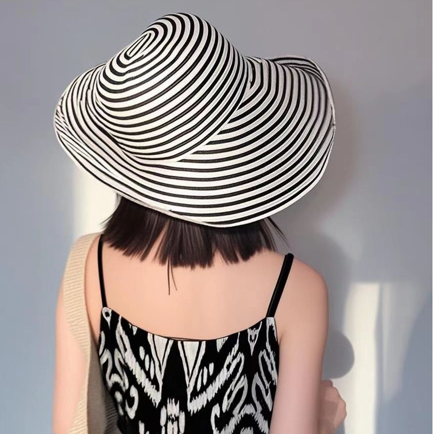韩版春夏季户外出游时尚百搭条纹帽渔夫帽可折叠遮阳帽防紫外线