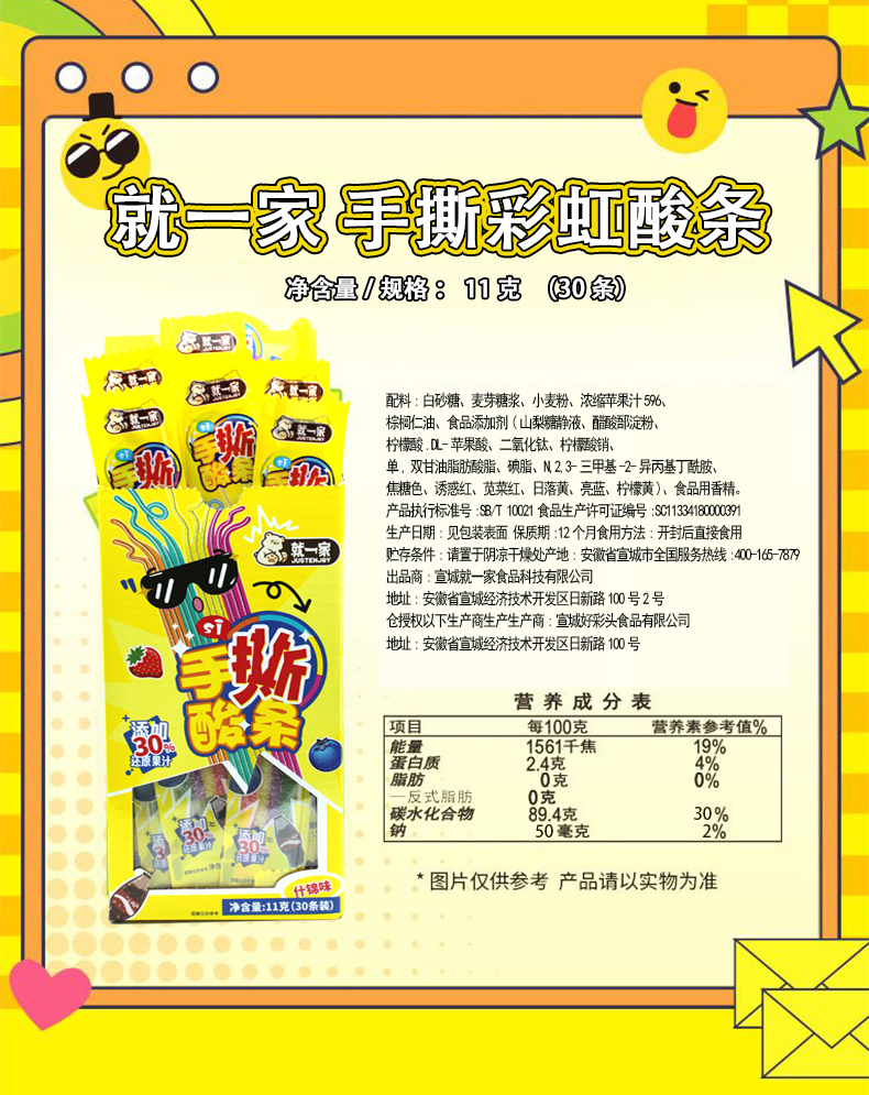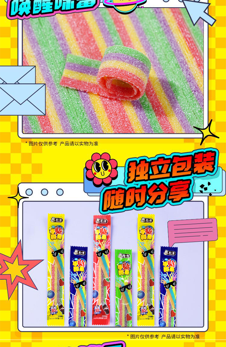 这款手撕酸条彩虹酸砂软糖,家里的小零食库就再也没缺过货啦!这次我选择的是什锦味,每打开一包都是一个小小的惊喜,酸甜交织的味道让人欲罢不能。特别要提的是,包装上标注的【30条+4条】真的到手就是34条,分量足足的,完全没有虚假宣传,商家很诚信哦!
